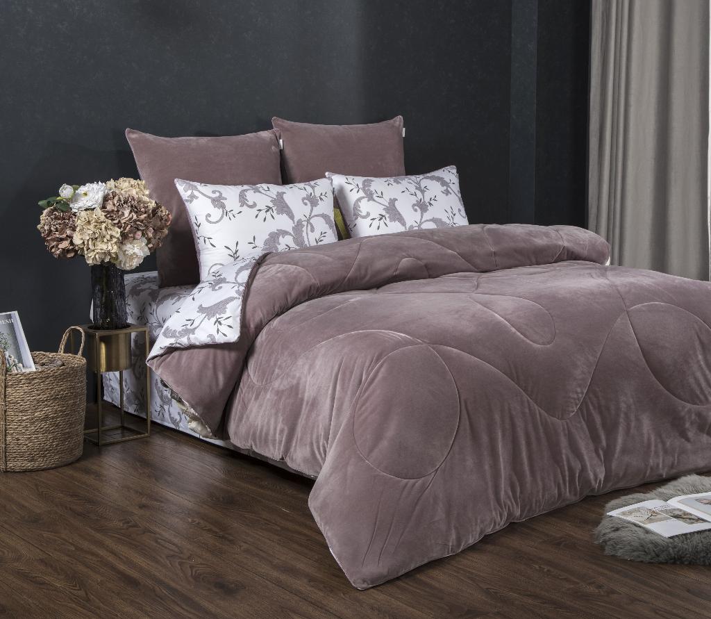 Постельное белье с одеялом "Kazanov.A." Дакота (жемчуг лаванда) Велюр/Egypt Cotton, Евро