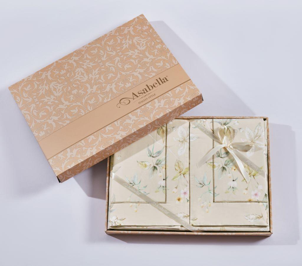 Для производства постельного белья из мако-сатина торговой марки «Asabella» с пододеяльником на молнии и наволочками с клапаном используется длинноволокнистый египетский хлопок. Гладкий, мягкий и нежный, по тактильным ощущениям мако-сатин напоминает шёлк. Структура волокон египетского хлопка определяет не только присущую постельному белью из мако-сатина внешнюю привлекательность, но и лежит в основе его высокой прочности и износостойкости.