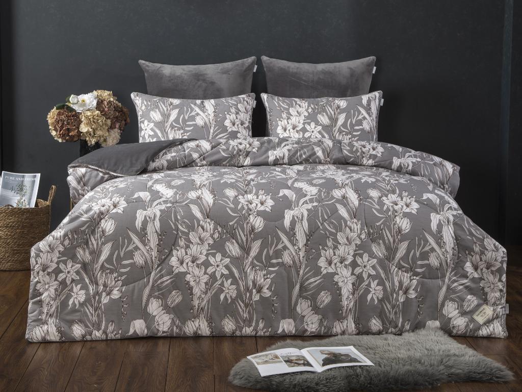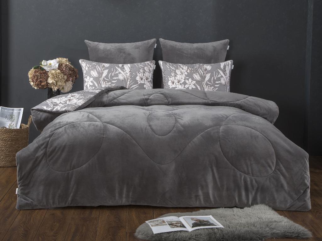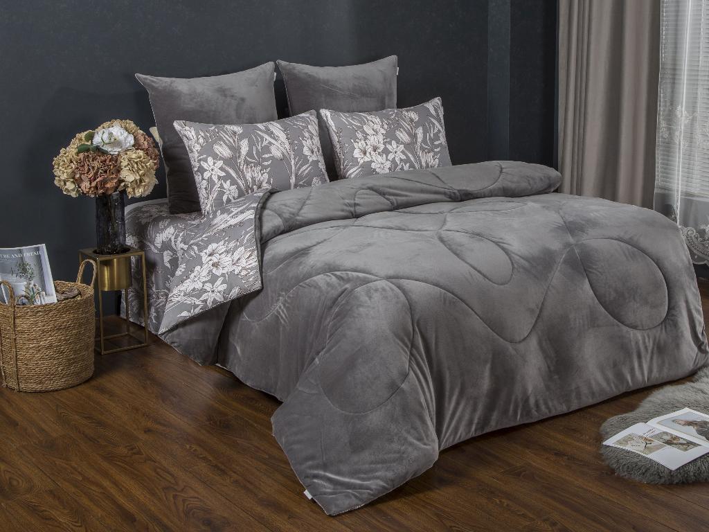 Постельное белье с одеялом "Kazanov.A." Ливви (графит капучино) Велюр/Egypt Cotton, Евро