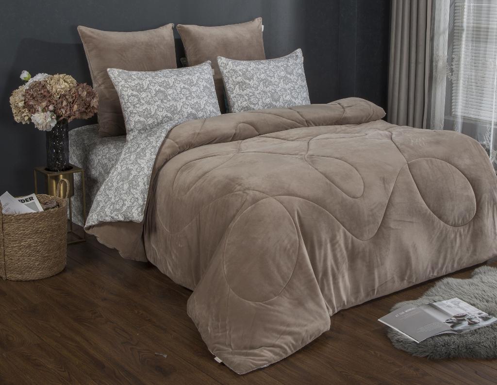 Постельное белье с одеялом "Kazanov.A." Остин (бежевый платина) Велюр/Egypt Cotton, Евро
