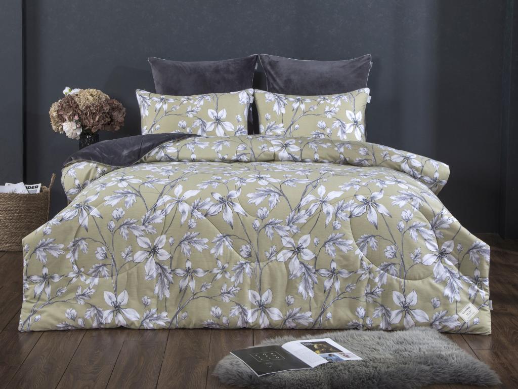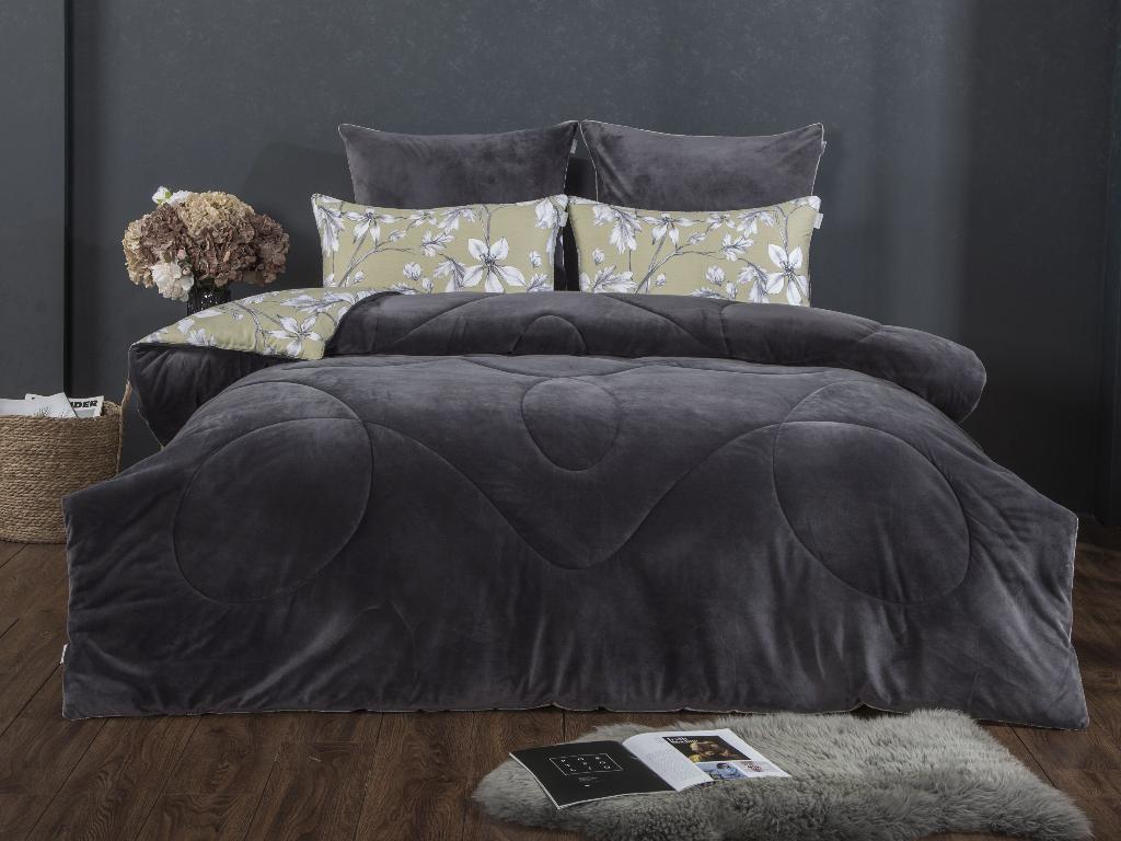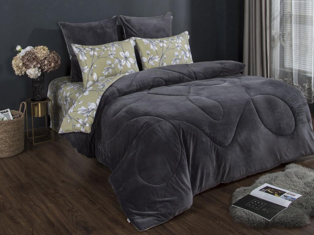 Постельное белье с одеялом "Kazanov.A." Мартина (графит олива платина) Велюр/Egypt Cotton, Евро