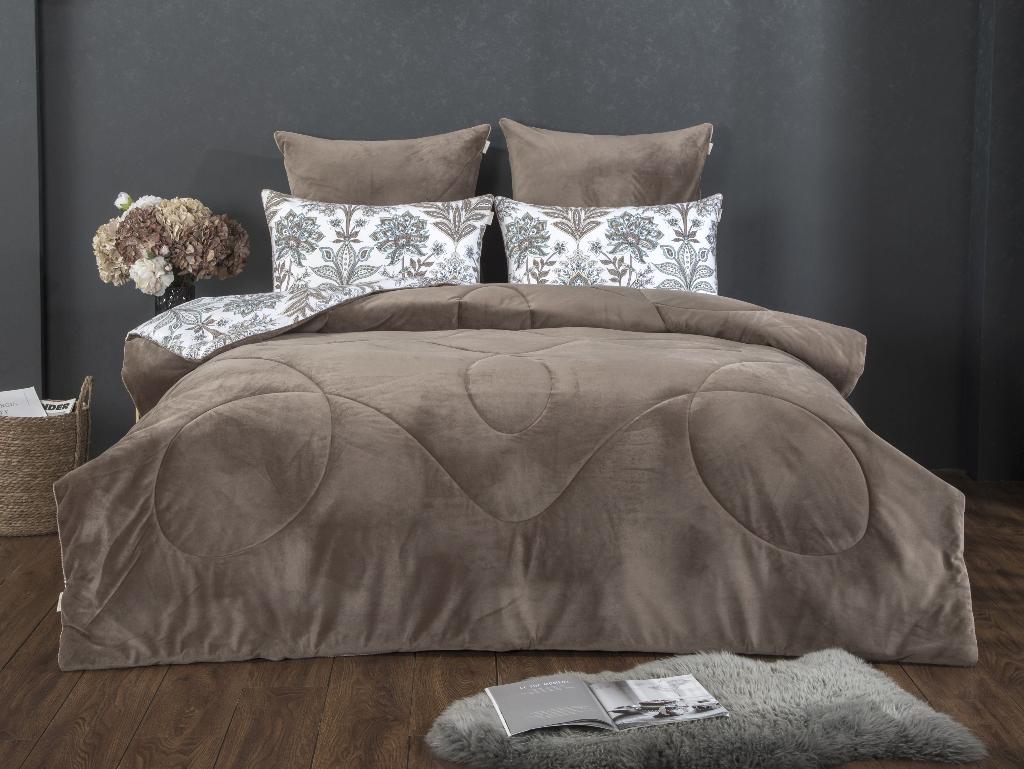 Постельное белье с одеялом "Kazanov.A." Брукс (капучино бежевый) Велюр/Egypt Cotton, Семейный
