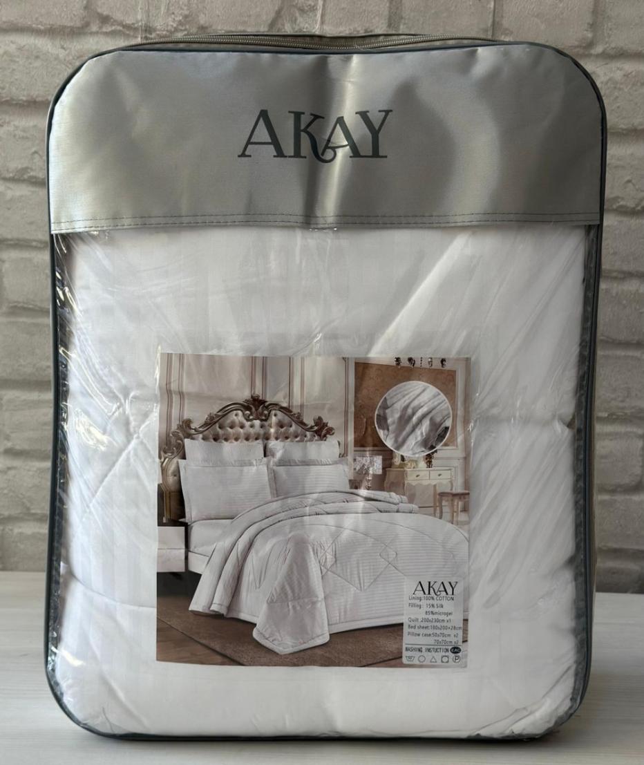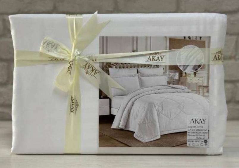 Постельное бельё с одеялом AKAY SATEN (белый), Евро