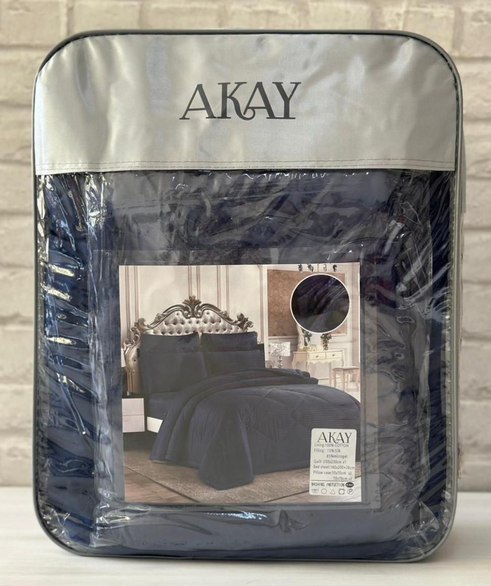 Постельное бельё с одеялом AKAY SATEN (темно-синий), Евро