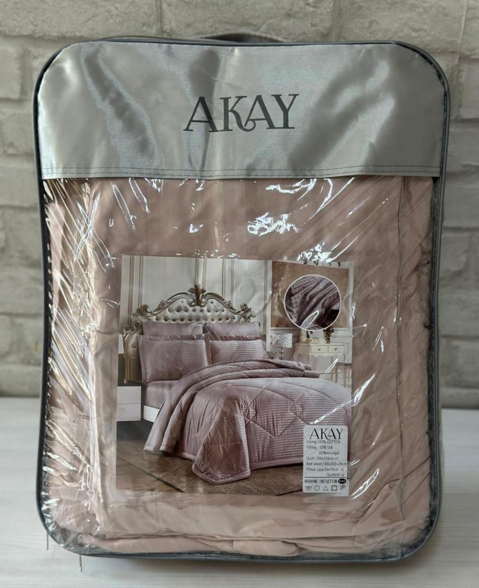 Постельное бельё с одеялом AKAY SATEN (сухая роза), Евро