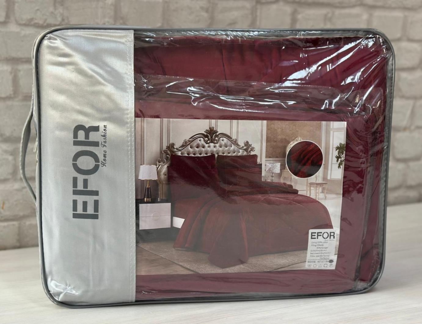 Постельное бельё с одеялом EFOR SATEN BORDO (бордовый), Евро