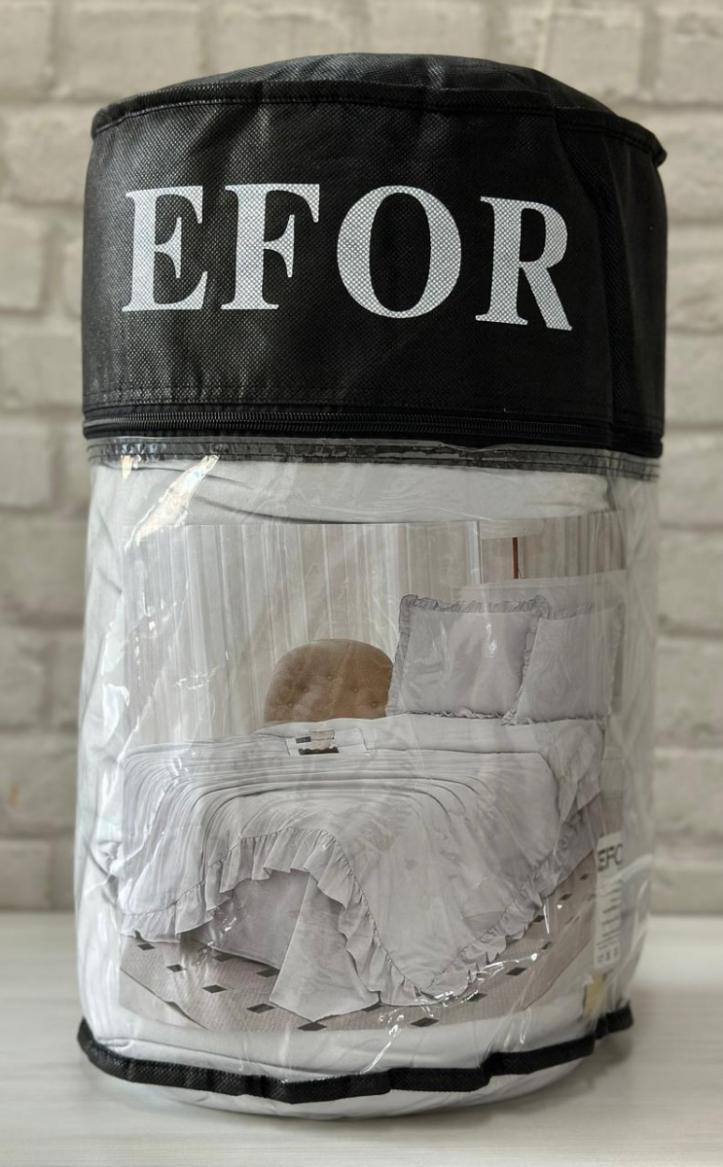 Постельное бельё данной серии торговой марки «EFOR» выполнено из сатина на основе смеси волокон хлопка и полиэстера. Вместо пододеяльника в комплект входит одеяло с наполнителем из смеси волокон микрогеля и шёлка. В качестве декоративного элемента используются рюши (оборка) по периметру одеяла и наволочек.