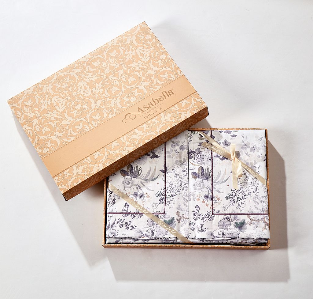 Для производства постельного белья из мако-сатина торговой марки «Asabella» с пододеяльником на молнии и наволочками с клапаном используется длинноволокнистый египетский хлопок. Гладкий, мягкий и нежный, по тактильным ощущениям мако-сатин напоминает шёлк. Структура волокон египетского хлопка определяет не только присущую постельному белью из мако-сатина внешнюю привлекательность, но и лежит в основе его высокой прочности и износостойкости.