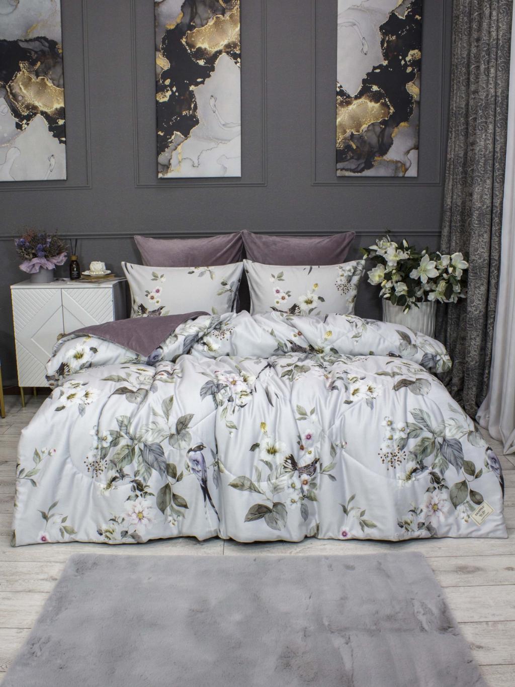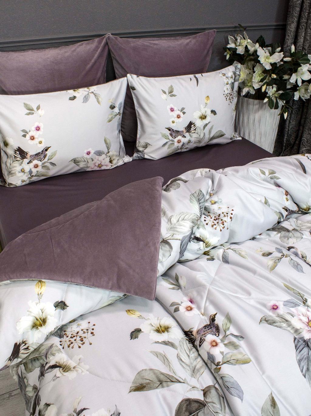 Постельное белье с одеялом "Kazanov.A." Севилья (жемчуг пыльная орхидея) Велюр/Egypt Cotton, Евро