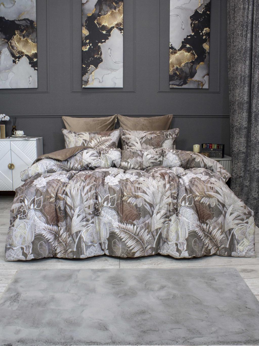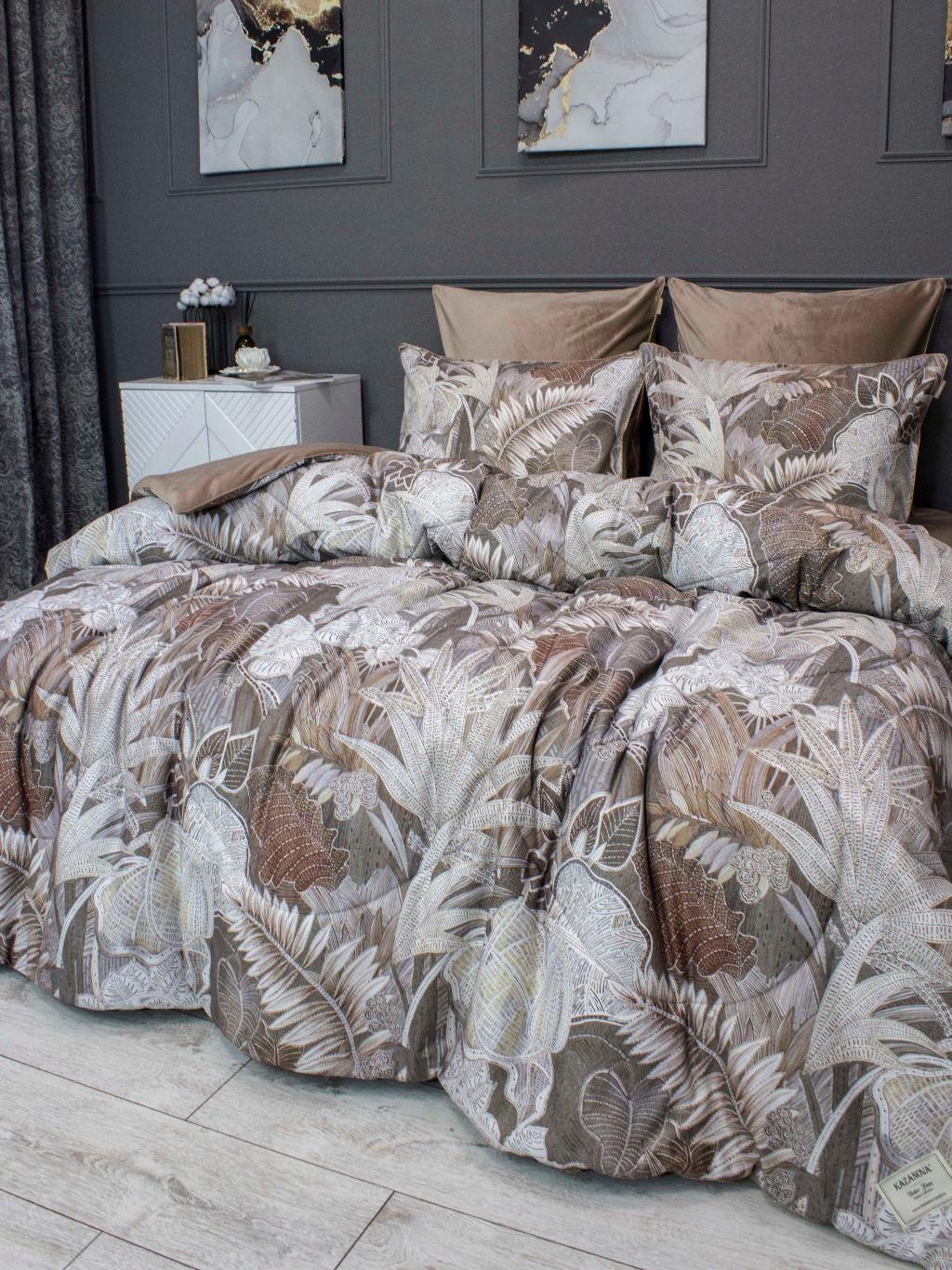 Постельное белье с одеялом "Kazanov.A." Мармарис (бежевый капучино) Велюр/Egypt Cotton, Семейный