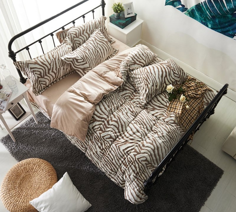 Комплекты выполнены из основной ткани - наружная поверхность пододеяльника и наволочек, и ткани компаньона - простыня, обратная сторона пододеяльника и наволочек.