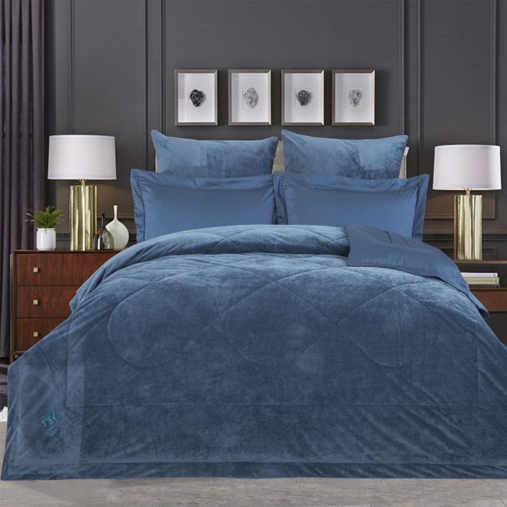 Постельное белье с одеялом "Kazanov.A." Lindor Premium (деним платина) Велюр/Egypt Cotton, Семейный