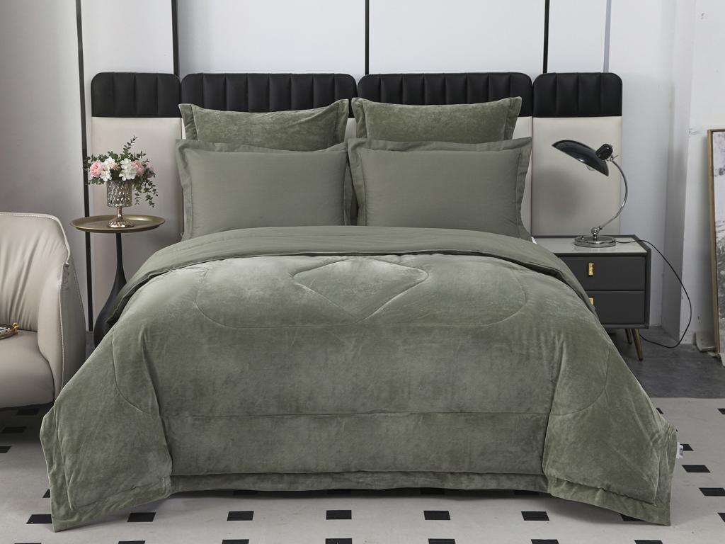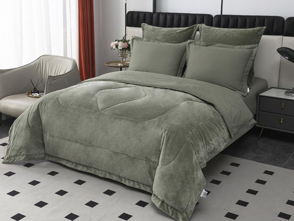 Постельное белье с одеялом "Sofi de Marko" Энрике (хаки) Велюр, 1,5 спальный