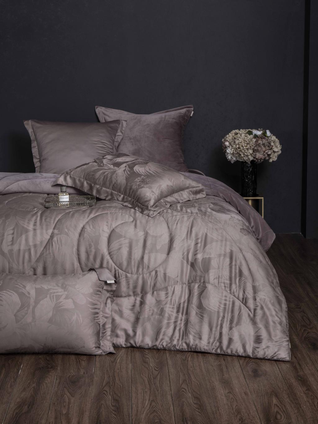Постельное бельё с одеялом вместо пододеяльника премиальной коллекции "LINDOR J’ADORE" выполнена в следующей комбинации тканей: жаккардовой, велюровой, мако-сатина из египетского хлопка.