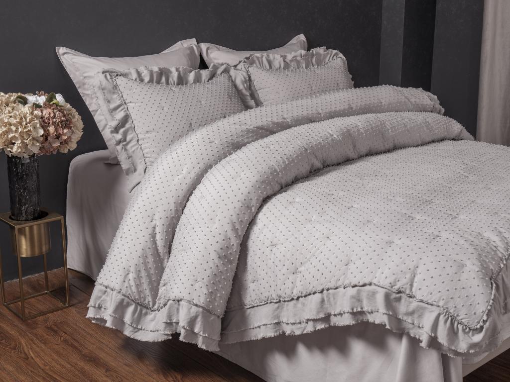 Коллекция "Molecule" представляет собой комбинацию постельного белья и лёгкого одеяла в чехле. В качестве наполнителя одеяла используется эковолокно-микрогель.