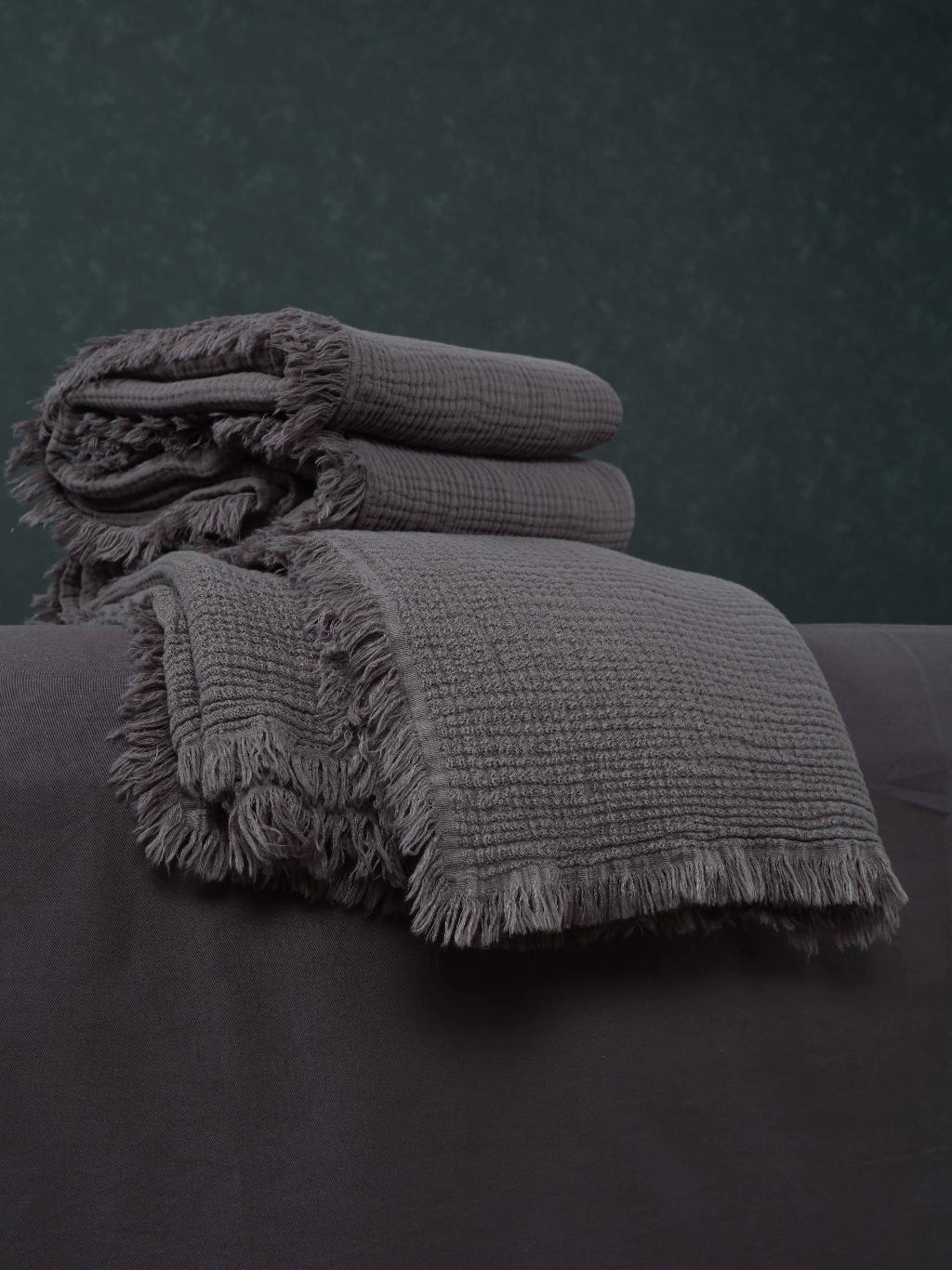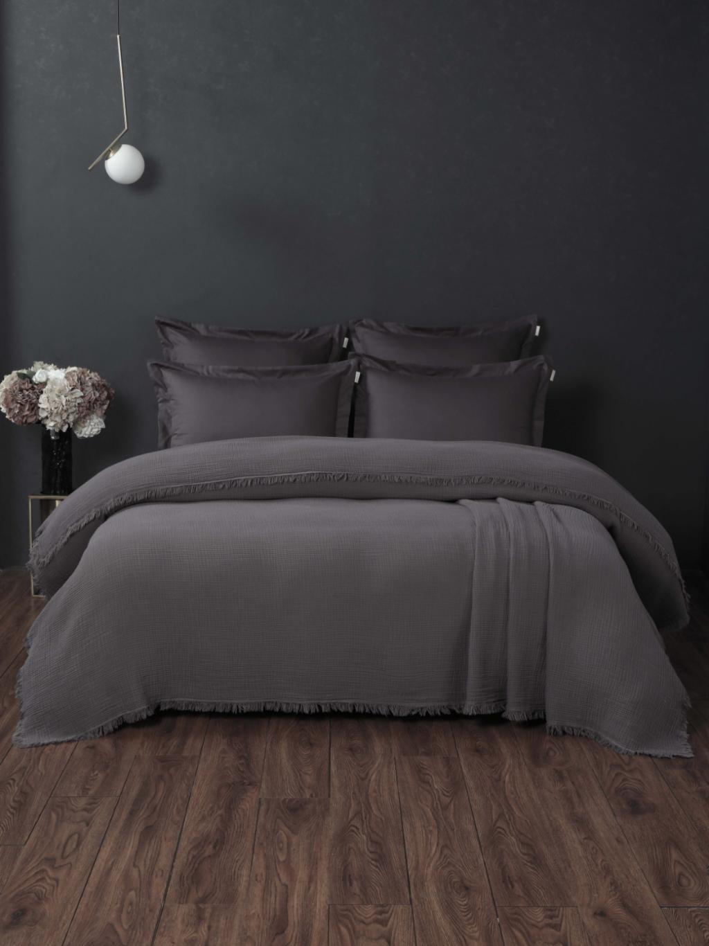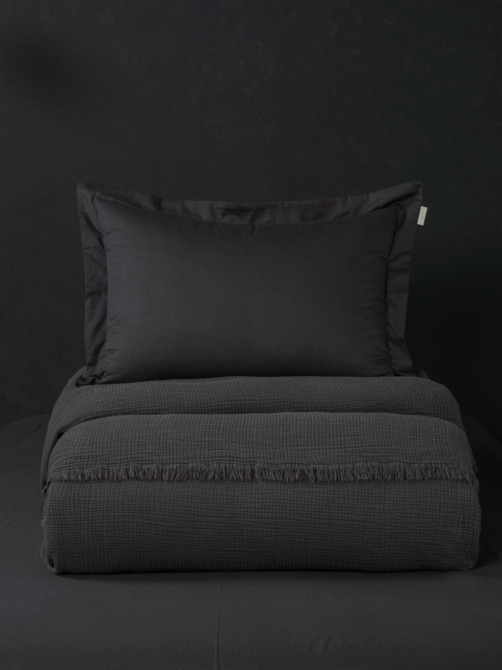 Постельное белье с покрывалом "Kazanov.A." Stonewash Muslin (графит) Муслин, Евро