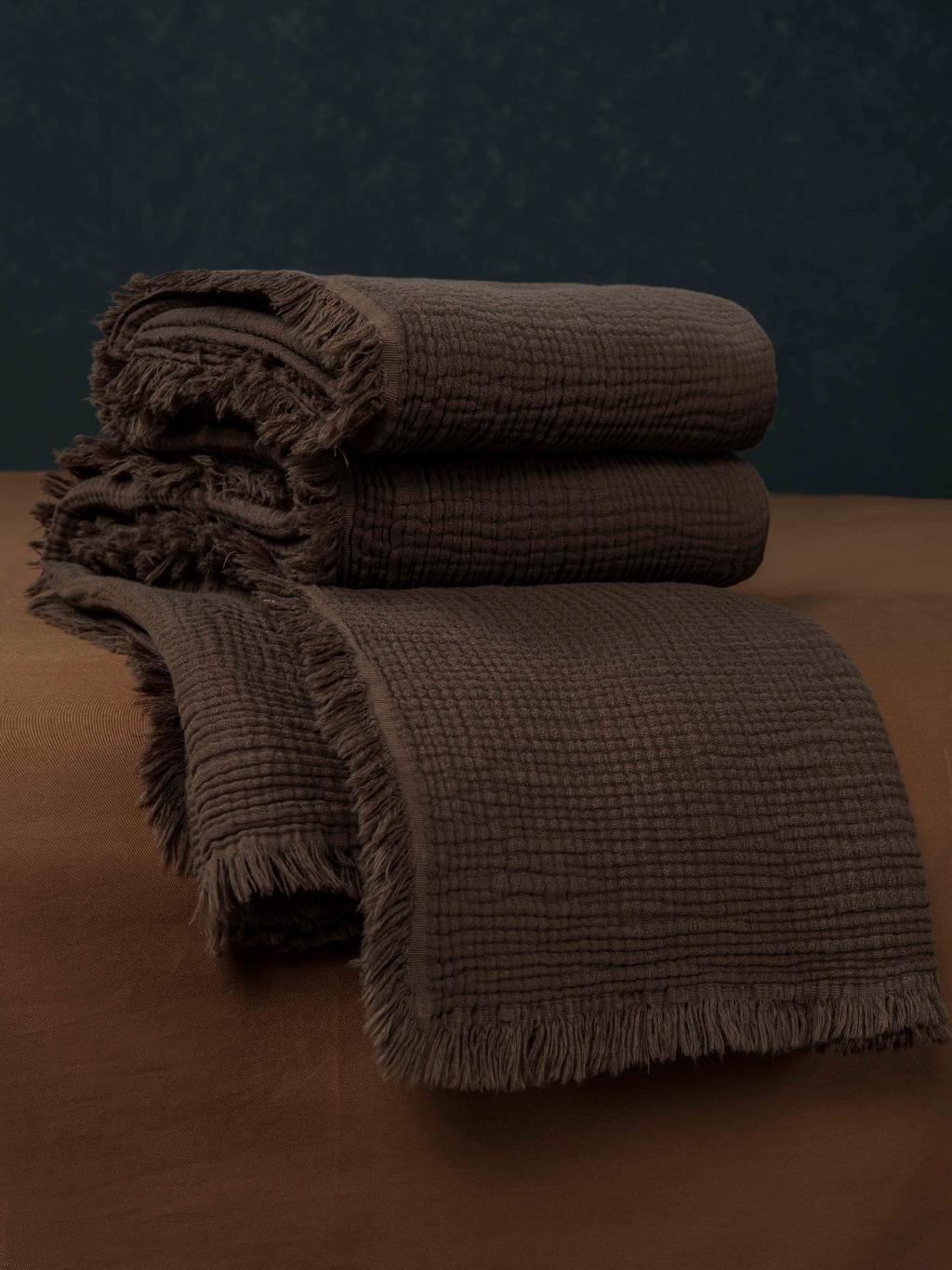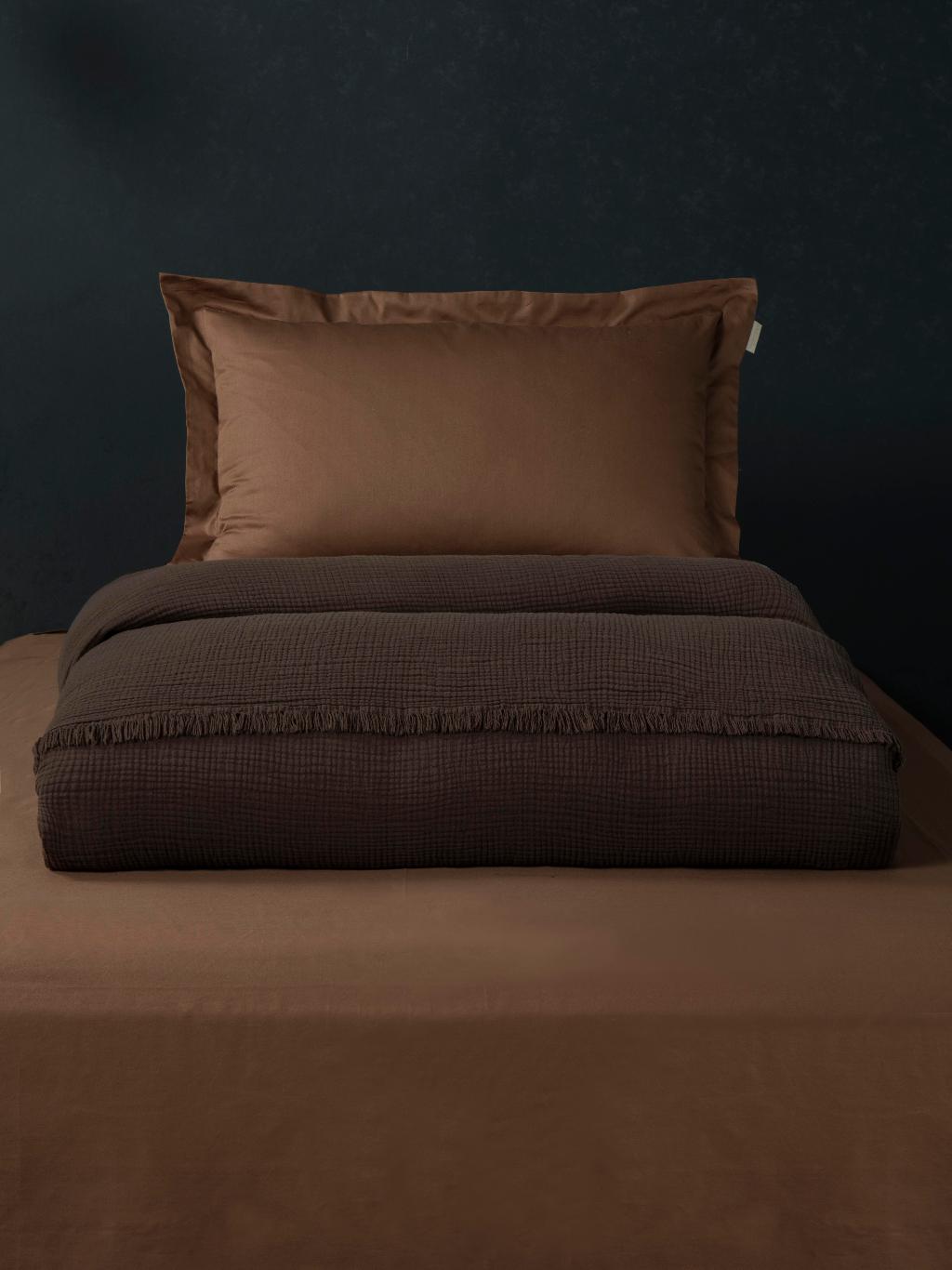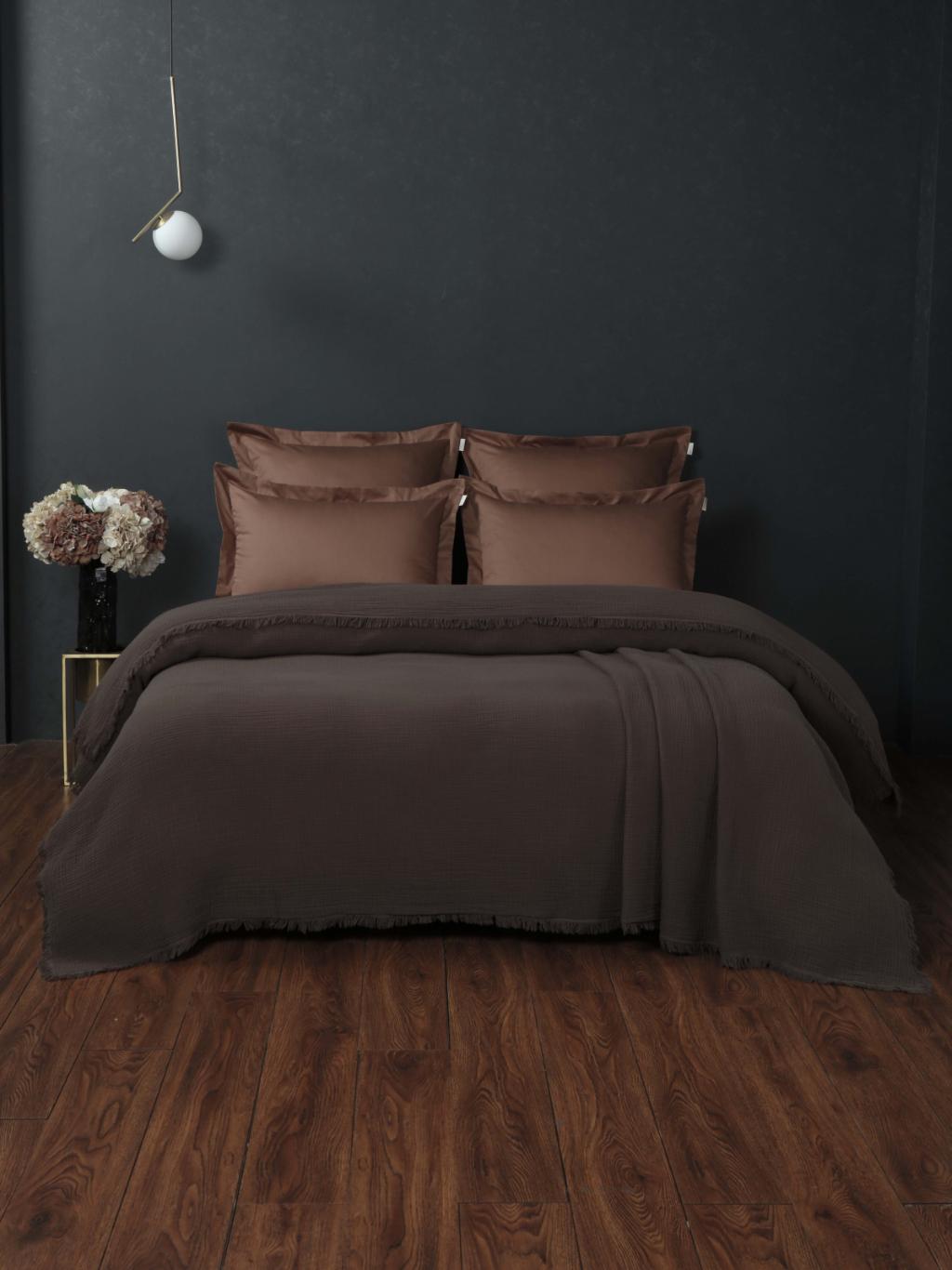 Постельное белье с покрывалом "Kazanov.A." Stonewash Muslin (брауни охра) Муслин, Евро