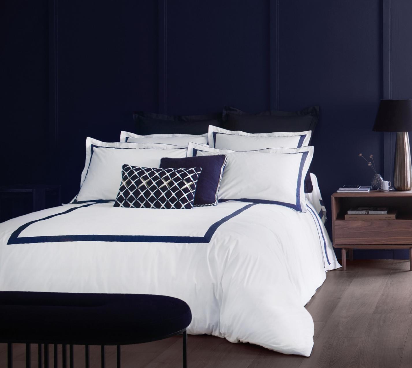 Постельное бельё "Blanc des Vosges" EGERIE BLEU CORINTHE перкаль, 1,5 спальный