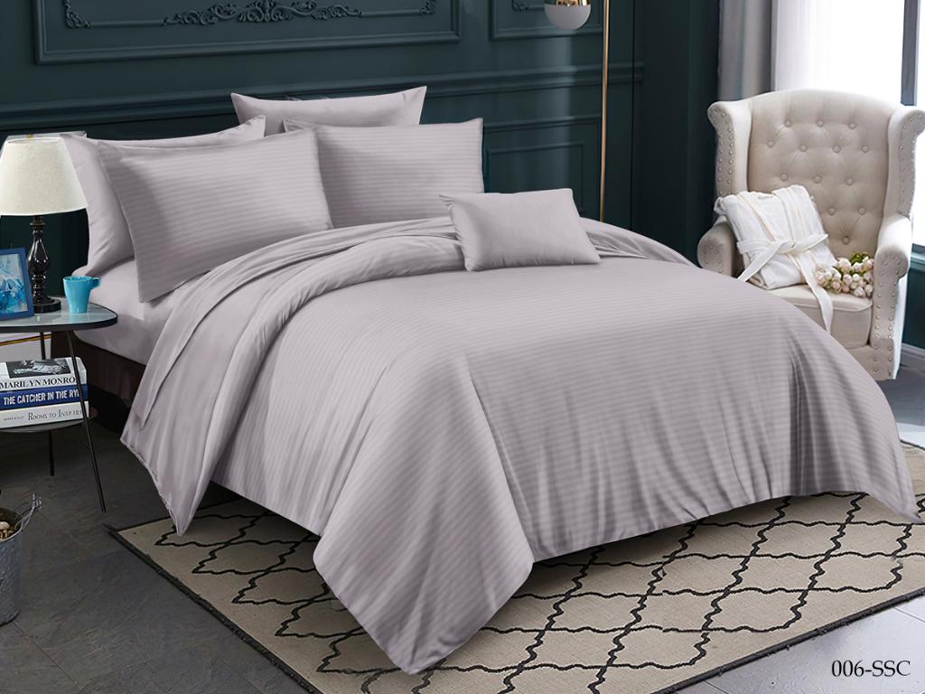 Для пошива постельного белья серии "Stripe Satin" торговой марки "Cleo" используется ткань страйп-сатин на хлопковой основе. Страйп-сатин - представляет собой удачное сочетание сатина и жаккарда. Основа материала выполнена из сатина, а полосы той же тональности в жаккардовом переплетении волокон. Помимо эстетической составляющей для постельного белья из страйп-сатина характерны очень высокий уровень прочности и износостойкости. Как и другим хлопковым изделиям, комплектам этой серии свойственны экологичность и гипоаллергенность, гигроскопичность и воздухопроницаемость.