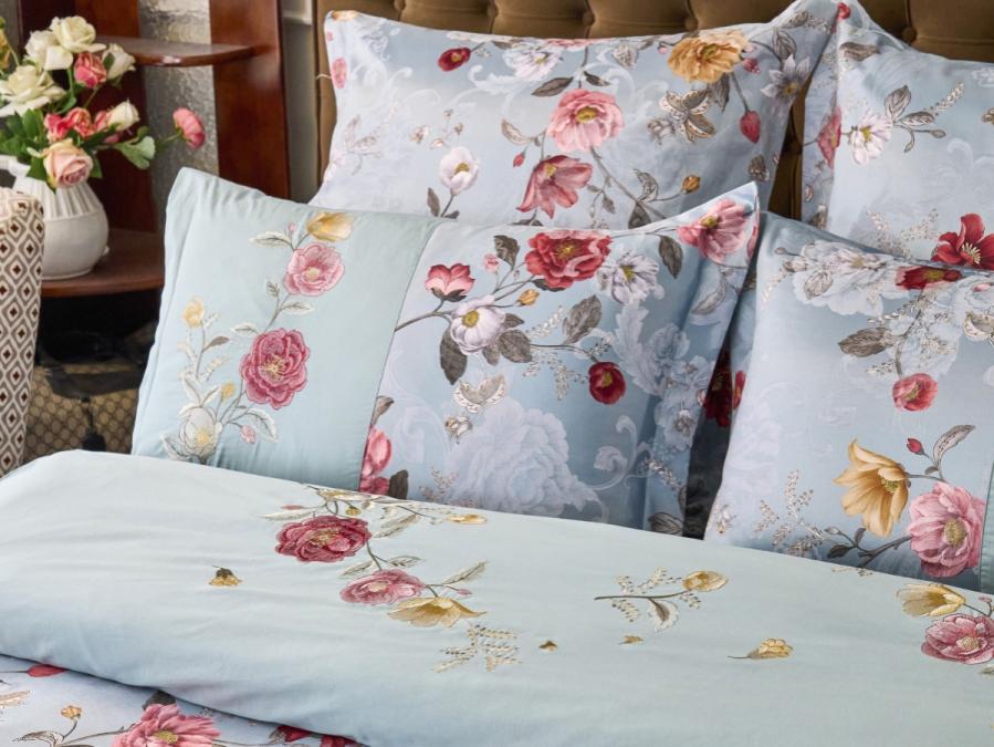 Постельное бельё с вышивкой данной серии выполнено из комбинации тканей: