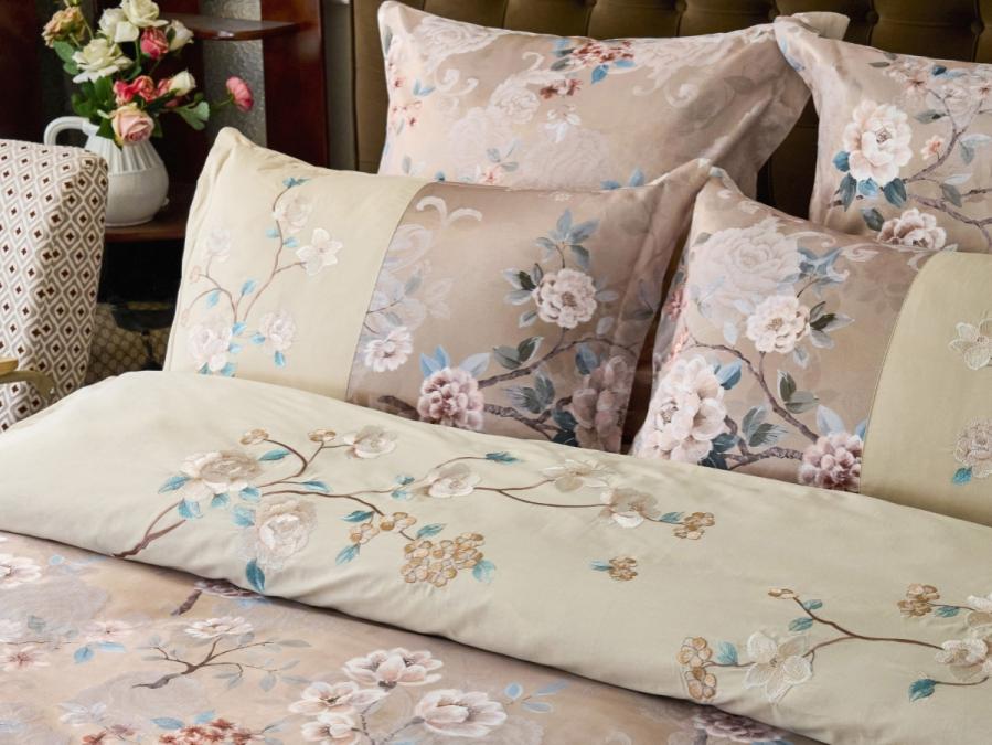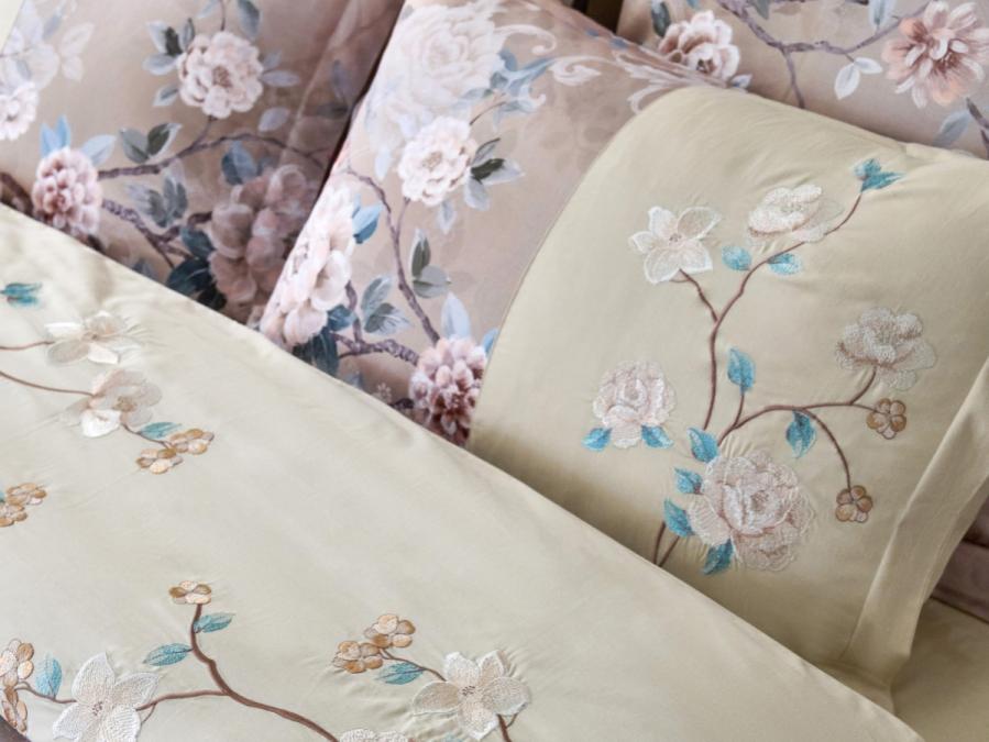 Постельное бельё с вышивкой данной серии выполнено из комбинации тканей: