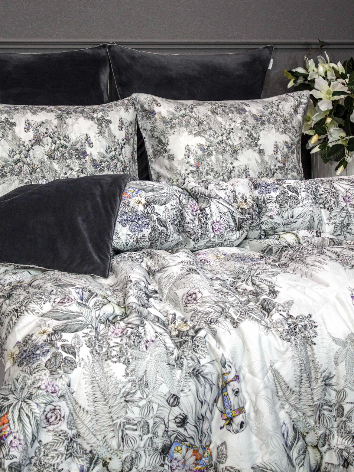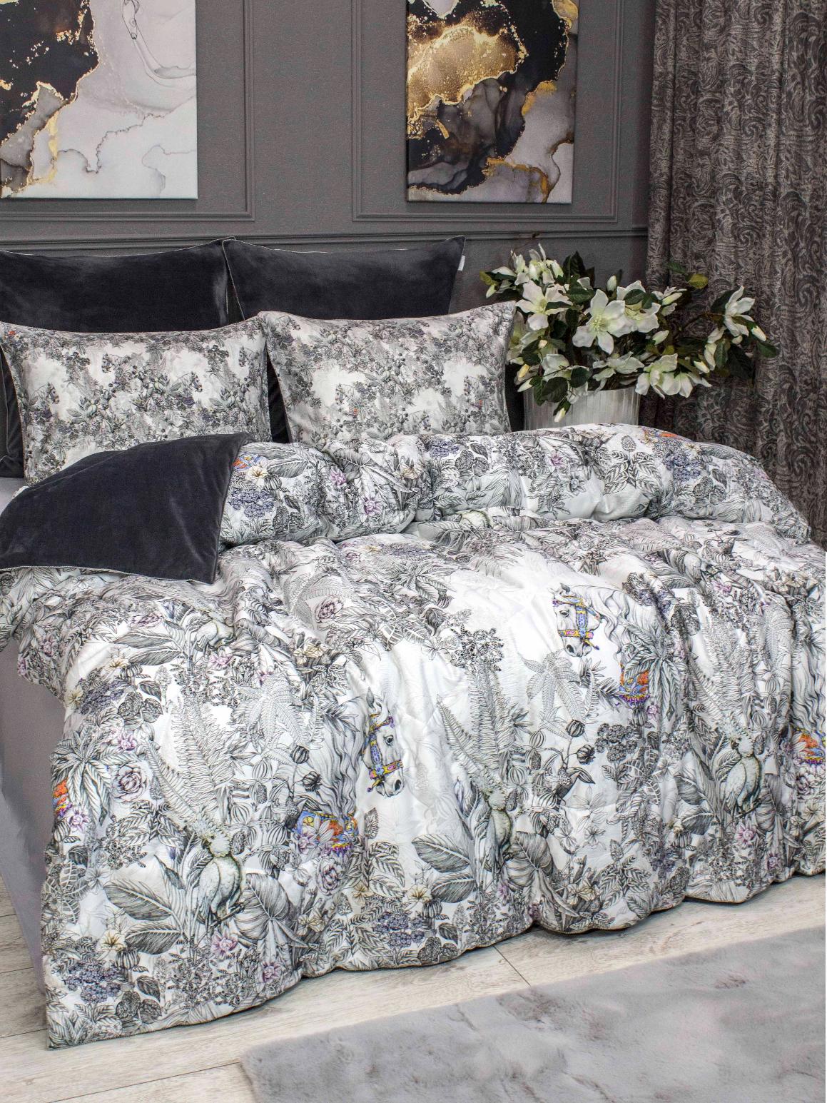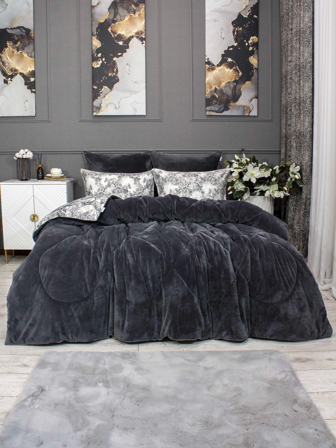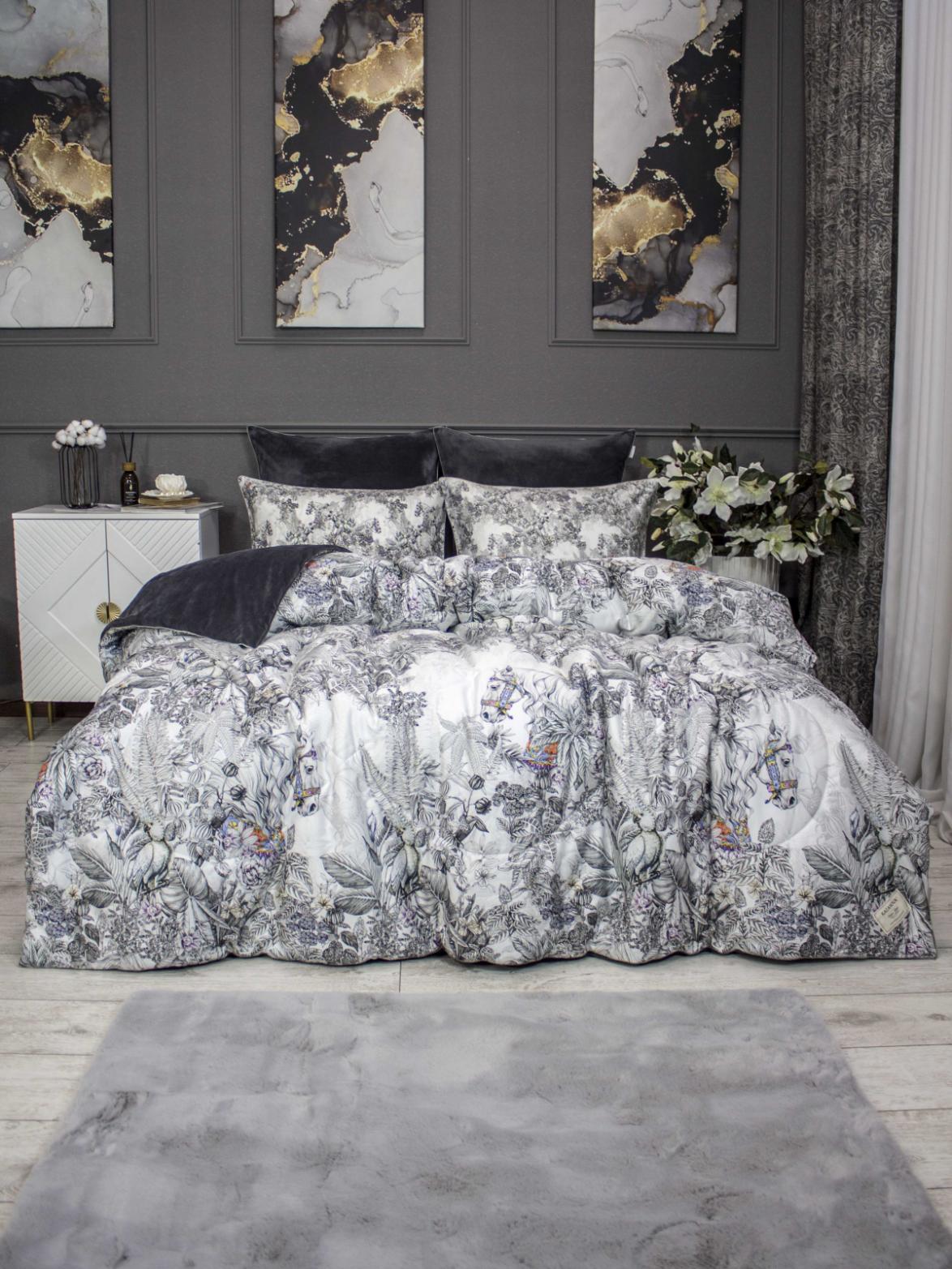 Постельное белье с одеялом "Kazanov.A." Фаворит (графит жемчуг) Велюр/Egypt Cotton, Семейный