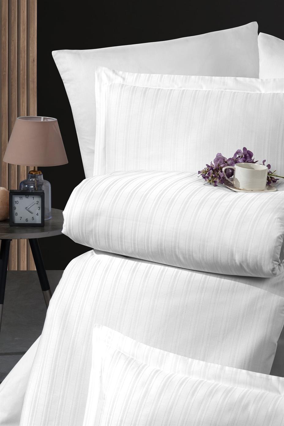 Постельное бельё "DO&CO" Сатин DELUX STRIPE, 1,5 спальный (белый)