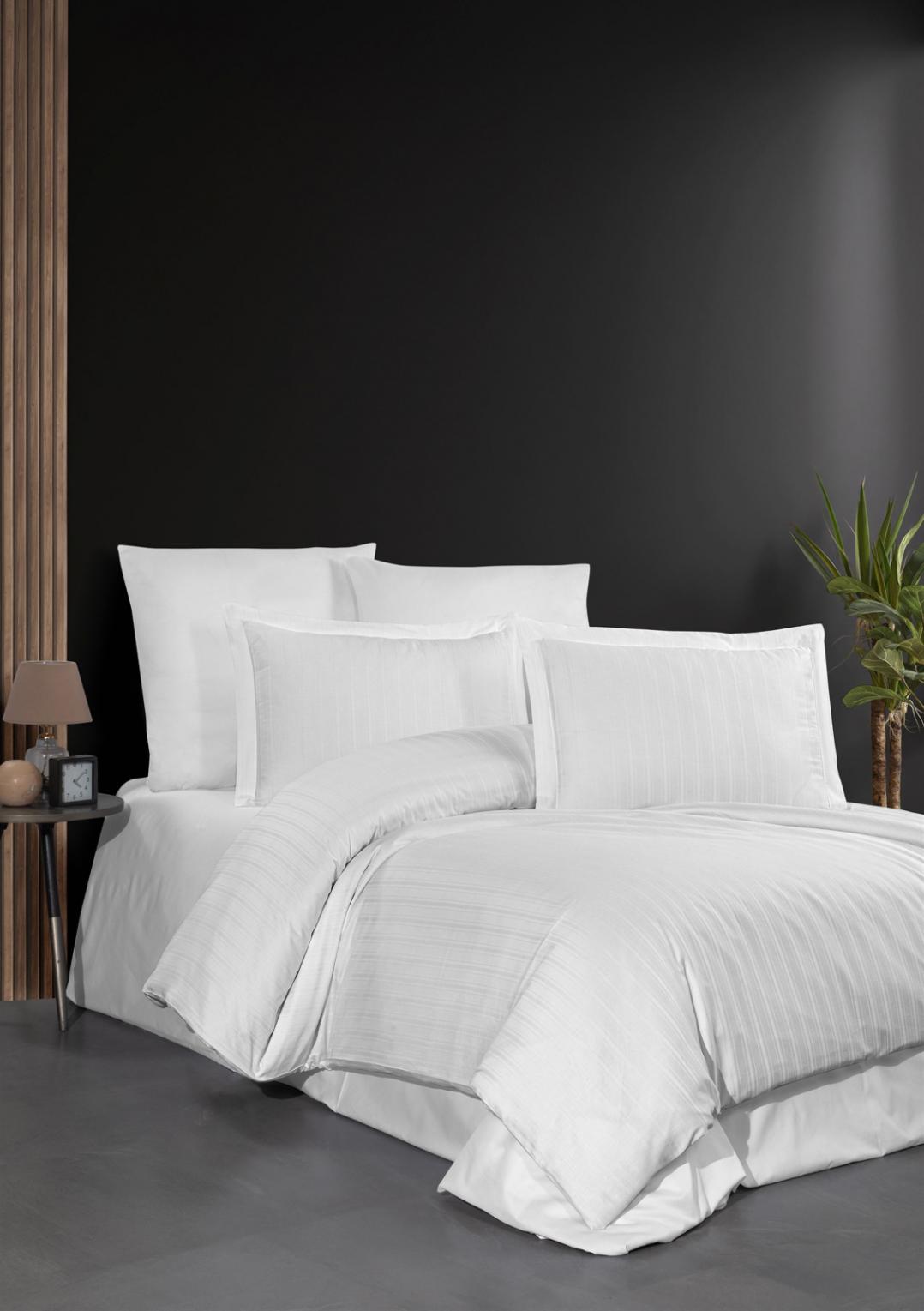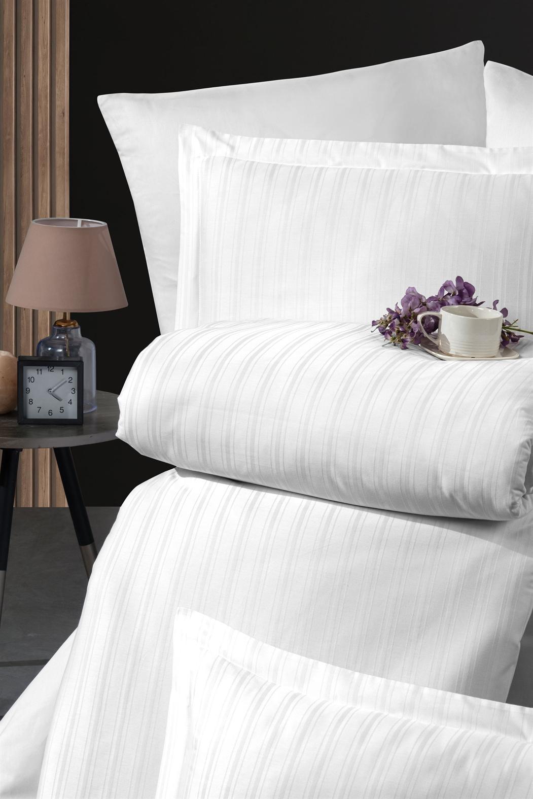 Постельное бельё "DO&CO" Сатин DELUX STRIPE, Евро (белый)