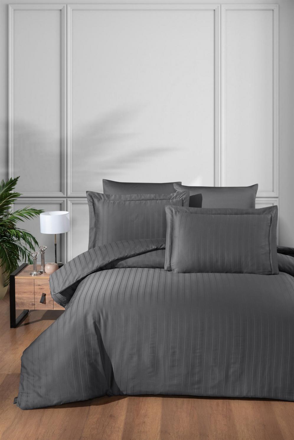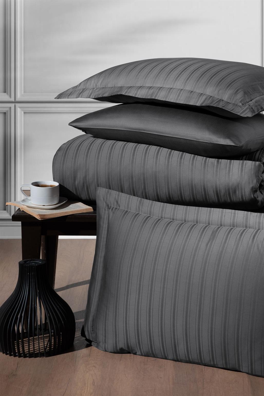 Постельное бельё "DO&CO" Сатин DELUX STRIPE, Евро (антрацит)