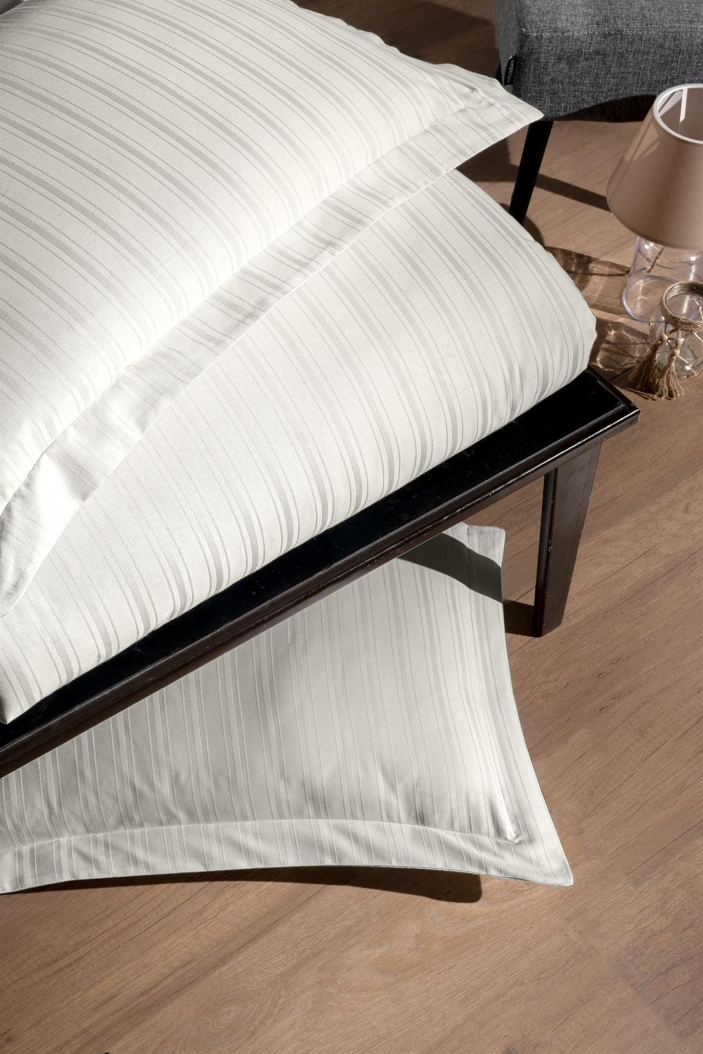 Для производства постельного белья серии "STRIPE" торговой марки "DO&CO" используется ткань страйп-сатин на хлопковой основе. Страйп-сатин - представляет собой удачное сочетание сатина и жаккарда. Основа материала выполнена из сатина, а полосы той же тональности в жаккардовом переплетении волокон. Помимо эстетической составляющей для постельного белья из страйп-сатина характерны очень высокий уровень прочности и износостойкости. Как и другим хлопковым изделиям, комплектам этой серии свойственны экологичность и гипоаллергенность, гигроскопичность и воздухопроницаемость.