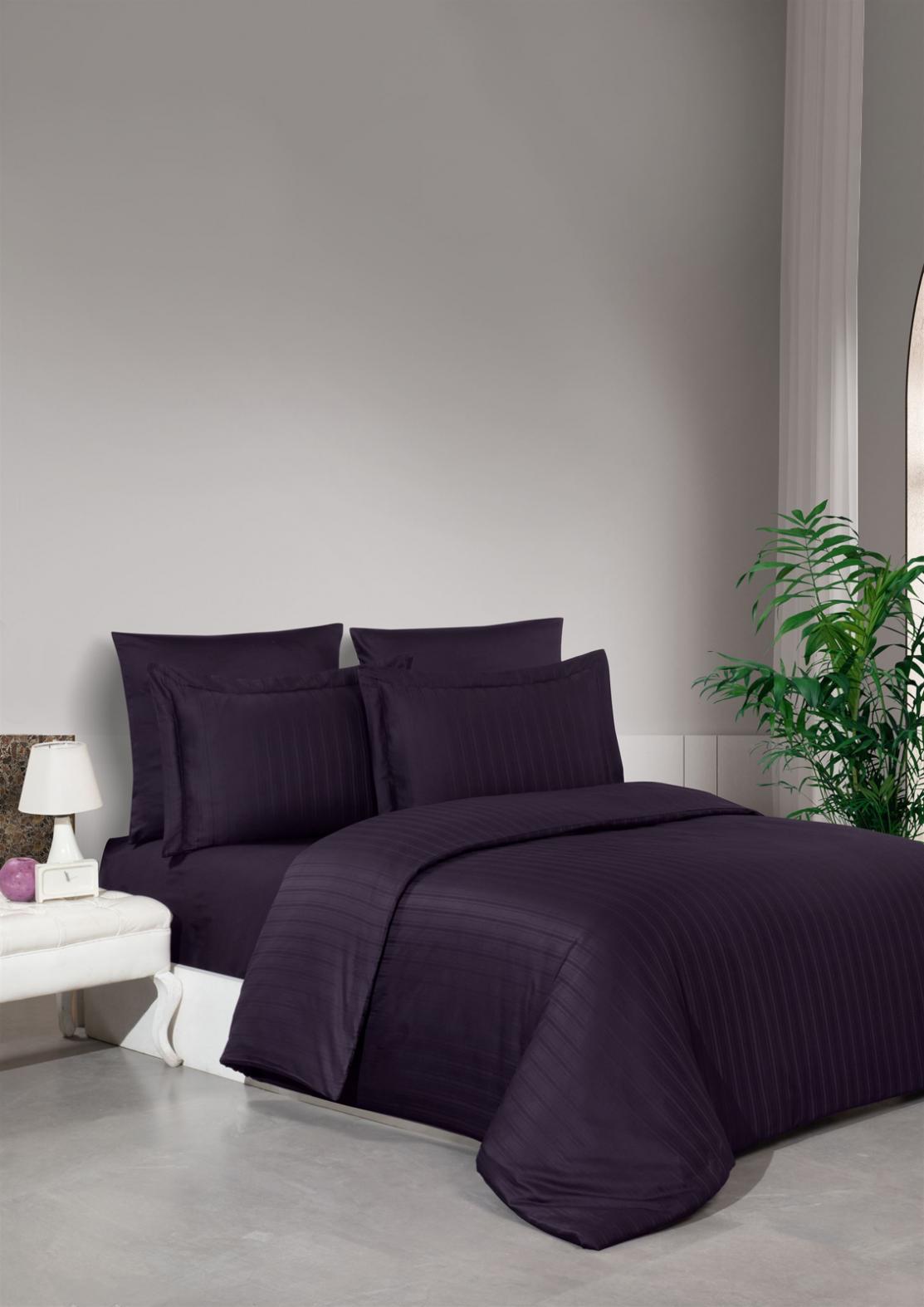Постельное бельё "DO&CO" Сатин DELUX STRIPE, Семейный (фиолетовый)