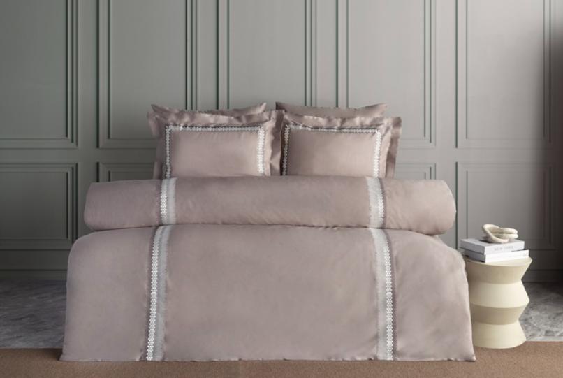 Постельное бельё "DANTELA VITA" сатин с вышивкой MONTANA (серо-коричневый), Евро