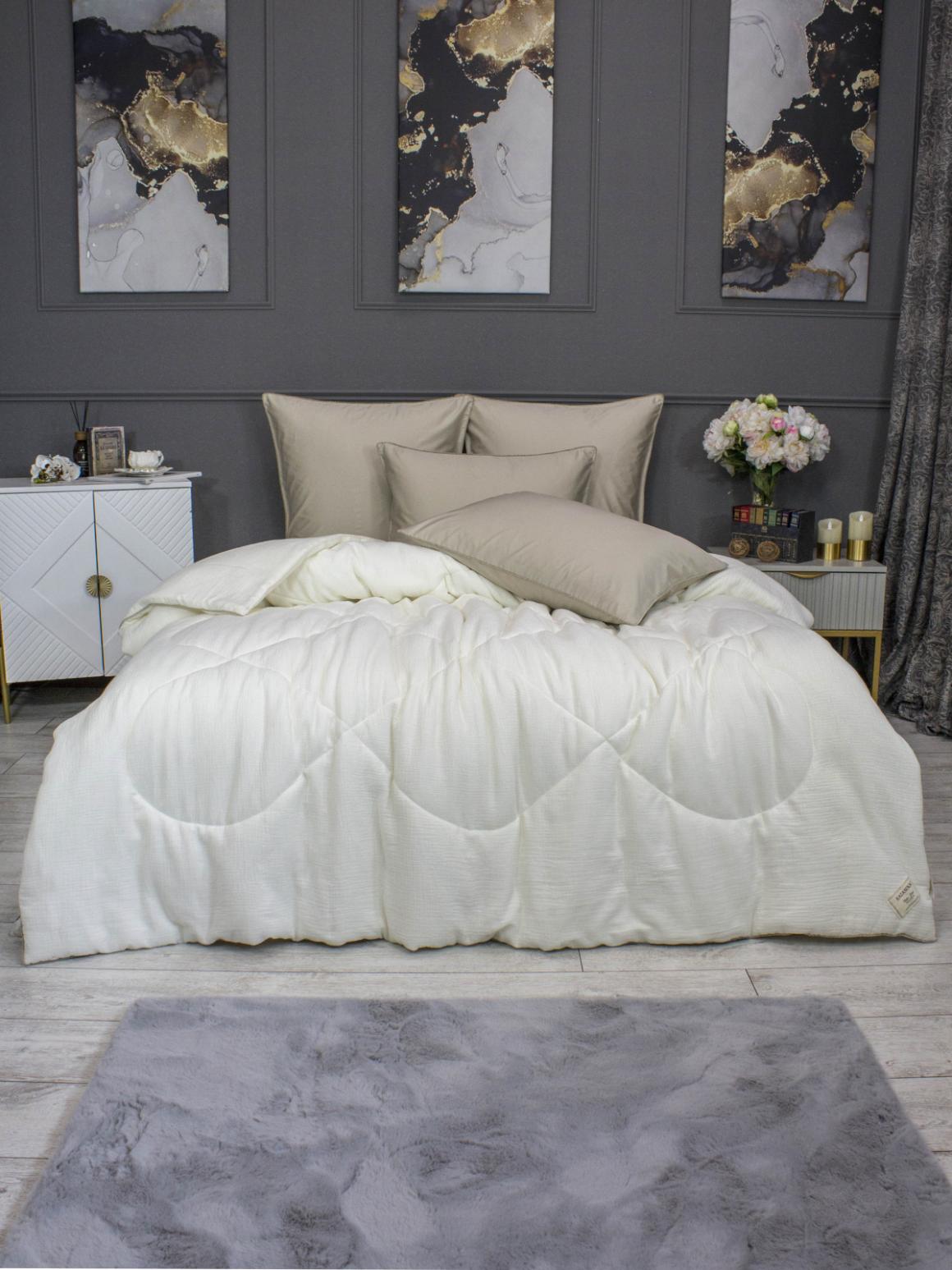 Постельное белье с одеялом "Kazanov.A." Muslin&Satin Solid color (крем карамель), Евро