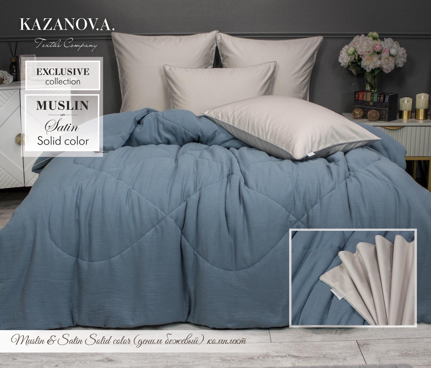 Постельное белье с одеялом "Kazanov.A." Muslin&Satin Solid color (деним бежевый), Евро