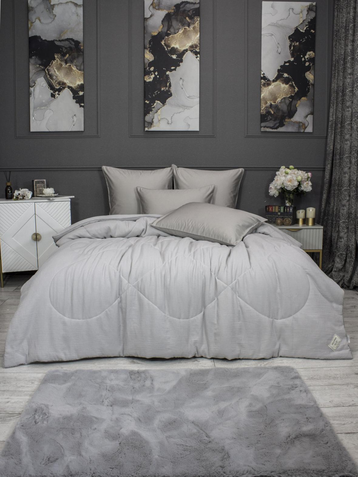 Постельное белье с одеялом "Kazanov.A." Muslin&Satin Solid color (серебрети бежевый), Евро