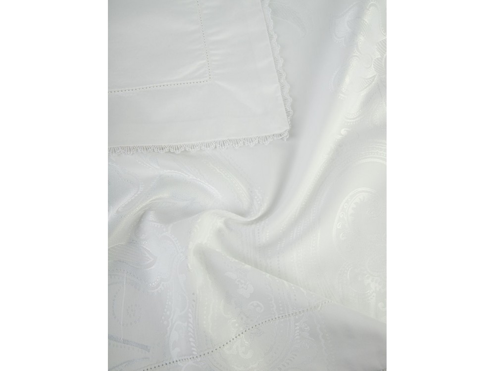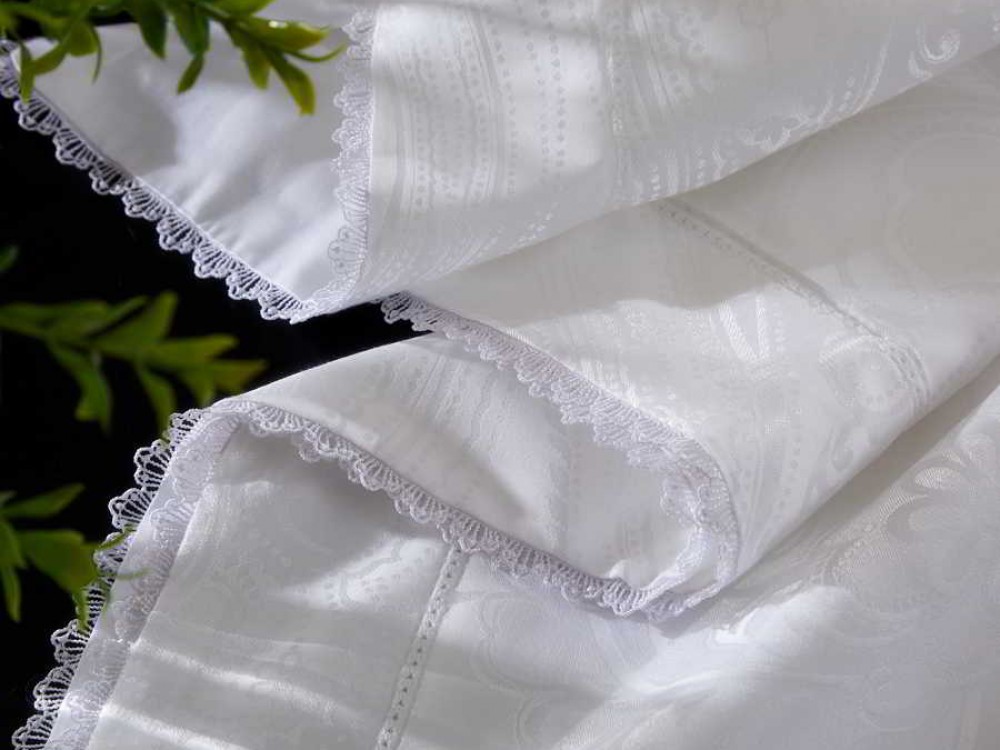 Постельное бельё данной серии с пододеяльником на молнии и наволочками с клапаном изготовлено из 100% хлопка. Верх пододеяльника и наволочек выполнены из жаккарда, а простыня, внутренняя сторона пододеяльника и наволочек из люкс-сатина. Жаккардовая ткань отличается не только изысканным внешним видом, но и высокой плотностью, прочностью и долговечностью.