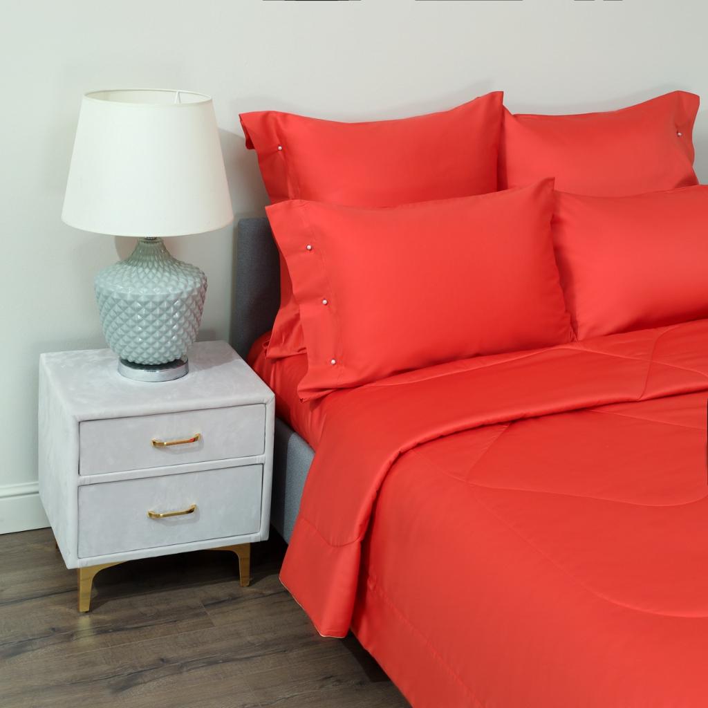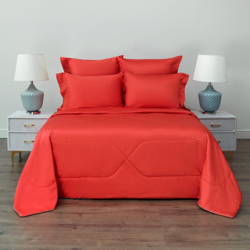 Постельное белье с одеялом "Sofi de Marko" Premium Mako (коралловый красный) Сатин ДеЛюкс, Евро