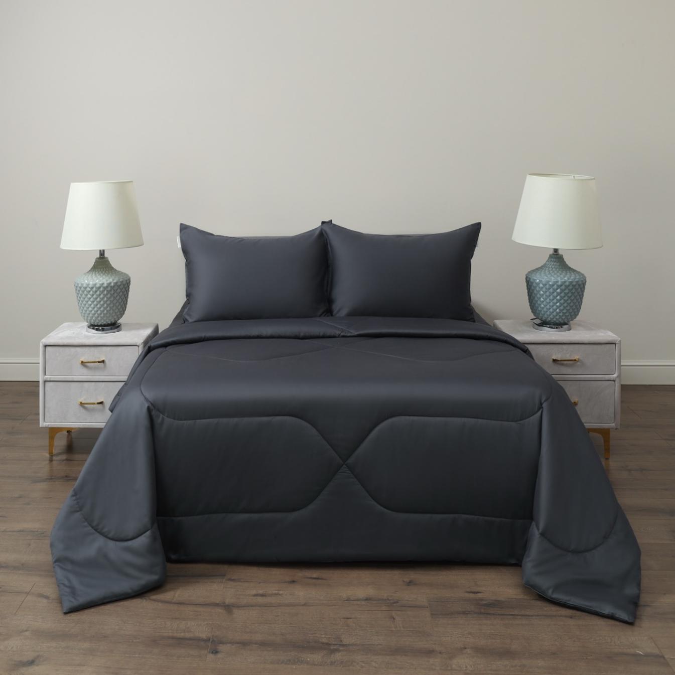 Постельное белье с одеялом "Sofi de Marko" Эльмира (антрацит) Сатин, 1,5 спальный