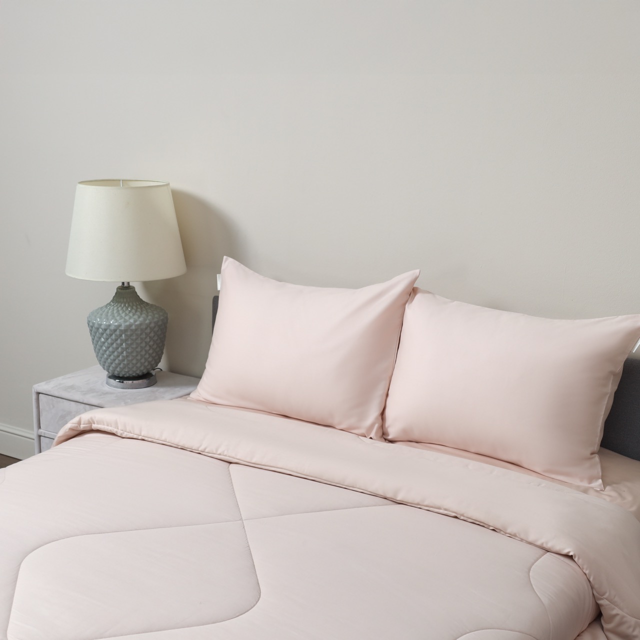 Постельное бельё серии "Эльмира" ТМ "«Sofi de Marco»" выполнено из 100% хлопка сатина. Многократное переплетение хлопковых волокон двойного кручения обеспечивает комплектам гладкость и шелковистость, прочность и износостойкость. Вместо стандартного пододеяльника в комплект входит одеяло с наполнителем из микро(нано) волокна. В качестве ухода рекомендована стирка при температуре 40 °C.