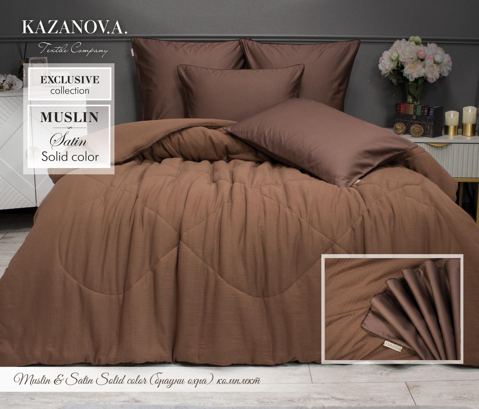 Постельное белье с одеялом "Kazanov.A." Muslin&Satin Solid color (брауни охра), Евро