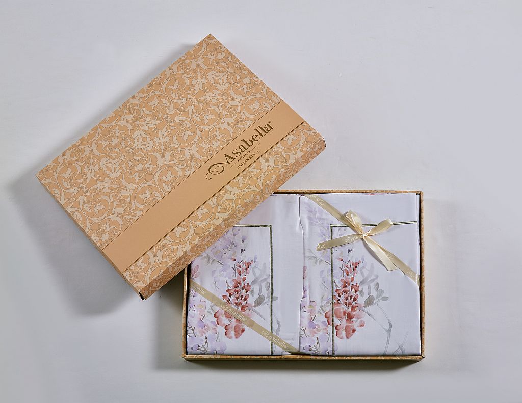Для производства постельного белья из мако-сатина торговой марки «Asabella» с пододеяльником на молнии и наволочками с клапаном используется длинноволокнистый египетский хлопок. Гладкий, мягкий и нежный, по тактильным ощущениям мако-сатин напоминает шёлк. Структура волокон египетского хлопка определяет не только присущую постельному белью из мако-сатина внешнюю привлекательность, но и лежит в основе его высокой прочности и износостойкости.