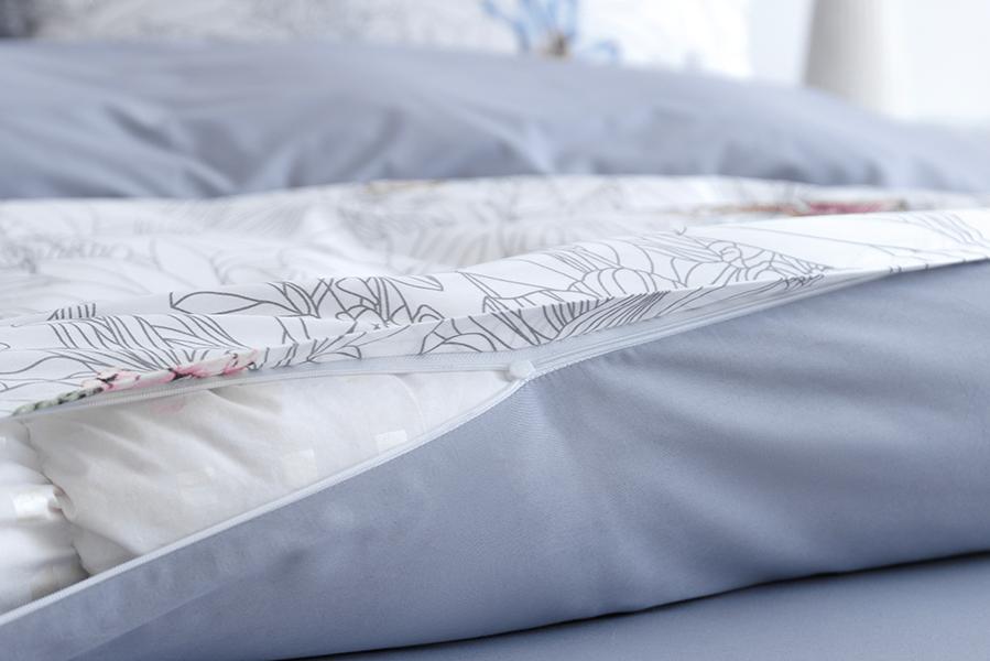 Комплекты коллекции BR выполнены с наволочками с запахом и пододеяльником на молнии.