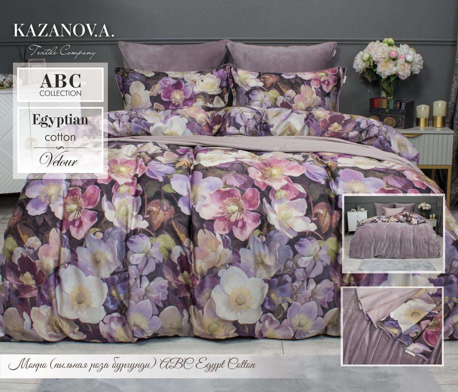 Постельное белье Kazanov.A. Монро (пыльная роза бургунди) Велюр/Egypt Cotton, Евро