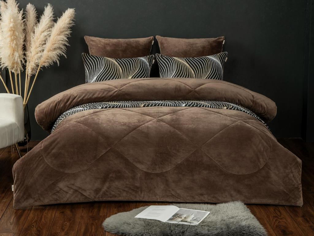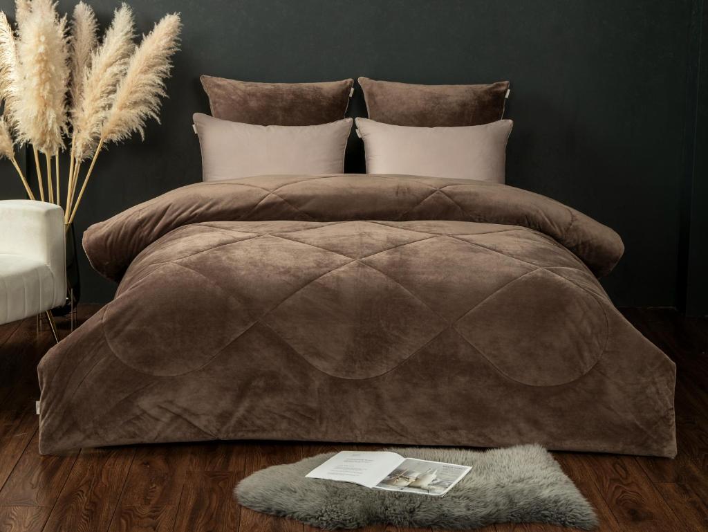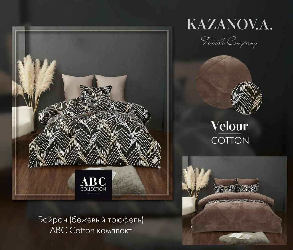 Постельное белье с одеялом "Kazanov.A." Байрон (бежевый трюфель) Велюр/Egypt Cotton, Семейный