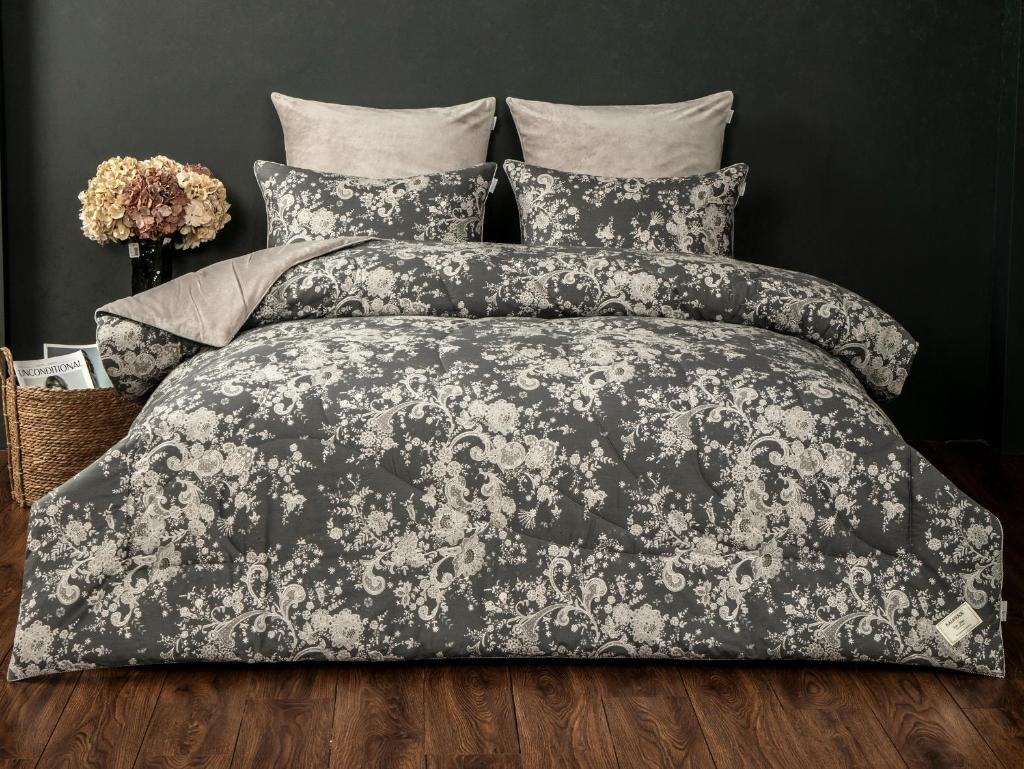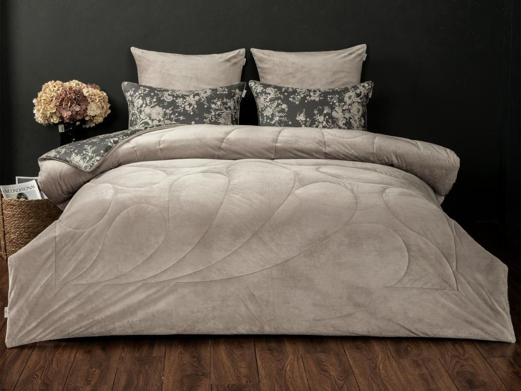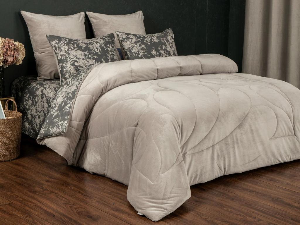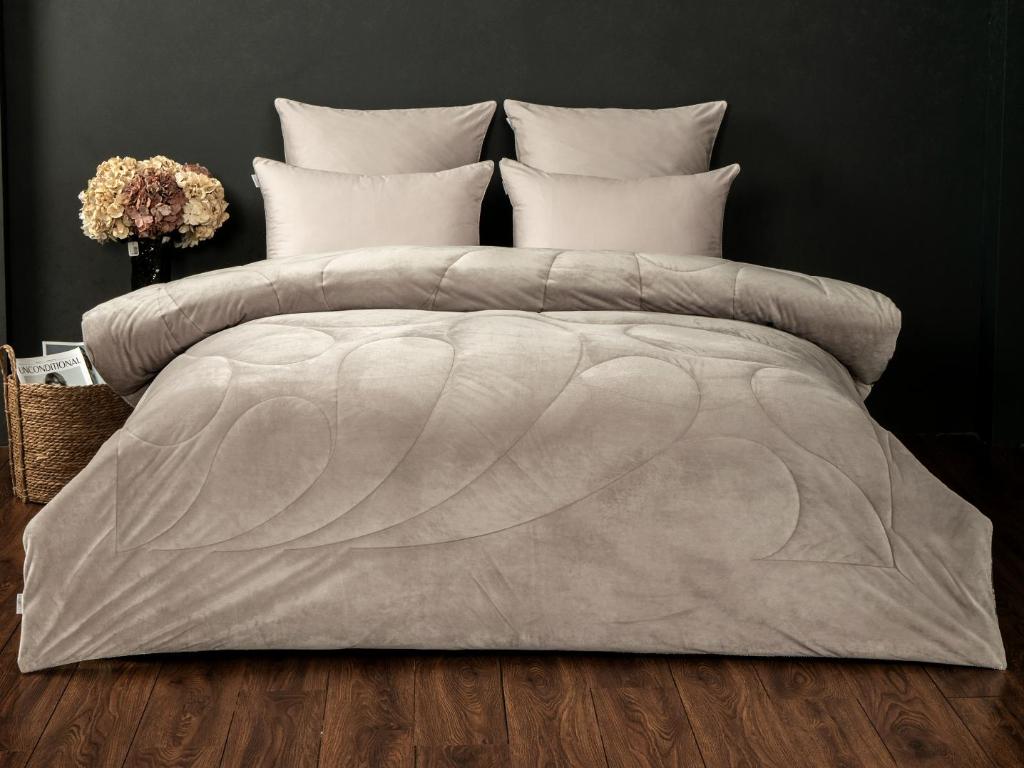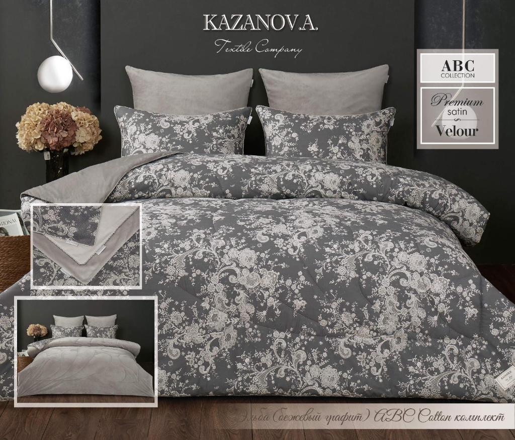 Постельное белье с одеялом "Kazanov.A." Эльба (бежевый графит) Велюр/Egypt Cotton, Семейный