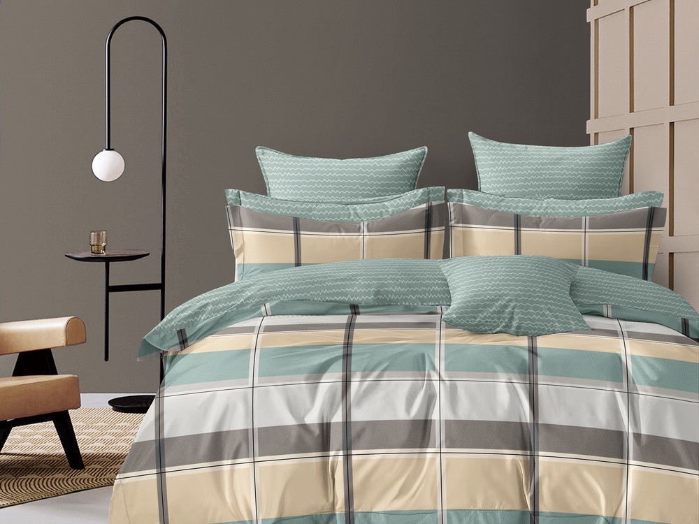 Комплекты выполнены из основной ткани - наружная поверхность пододеяльника и наволочек, и ткани компаньона - простыня, обратная сторона пододеяльника и наволочек.
