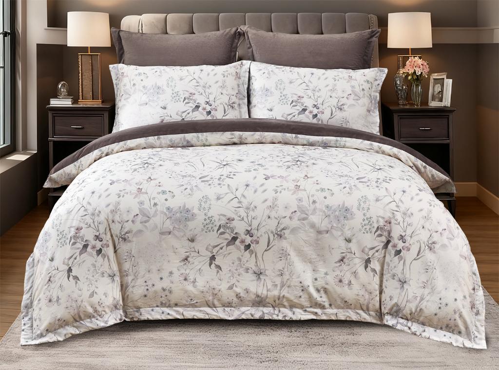 Коллекция постельного белья "Джули" выполнена в следующей комбинации тканей: велюровой (100% вискоза) и сатина (100% хлопок).