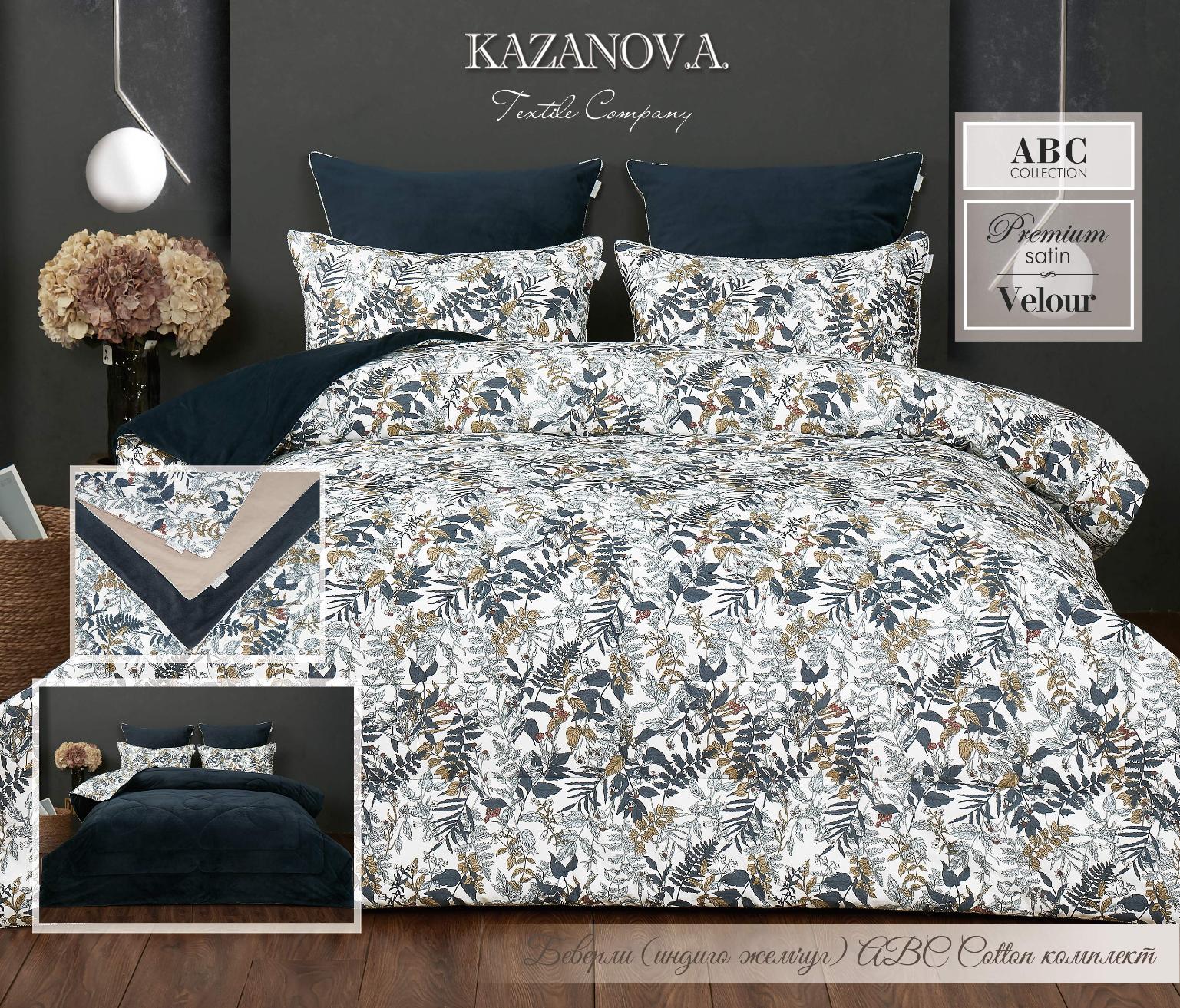 Постельное белье с одеялом "Kazanov.A." Беверли (индиго жемчуг) Велюр/Egypt Cotton, 1,5 спальный