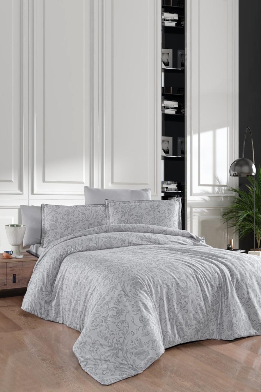 Постельное белье "DO&CO" Сатин DELUX ELLAN (серый), Евро