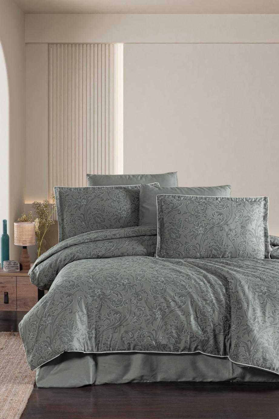 Постельное белье "DO&CO" Сатин DELUX ELLAN (зелёный), Евро